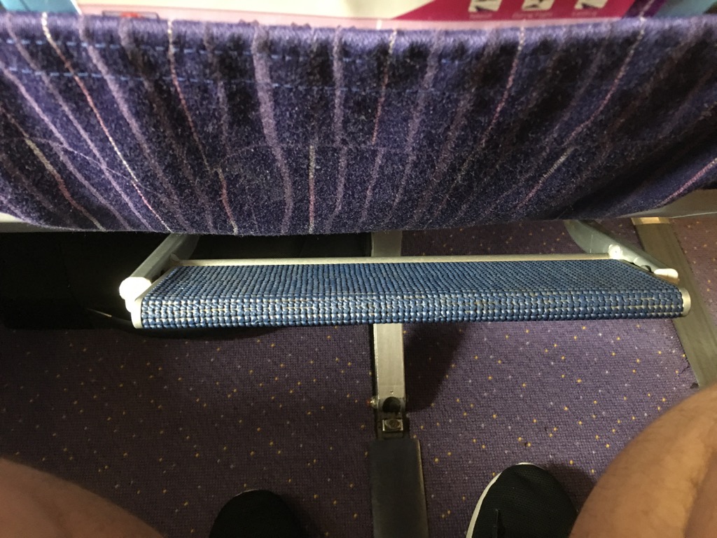 An jedem Sitz war auch eine Fußstütze angebracht. Diese machte in meinen Augen recht wenig Sinn, da man deutlich zu nah am Vordersitz gesessen hat.