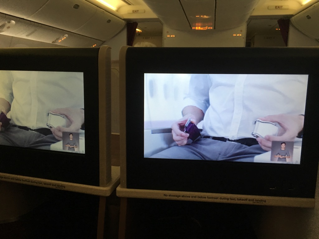 Vor dem Start wurde hier natürlich noch das Sicherheitsvideo gezeigt, bevor wir pünktlich nach Bangkok gestartet sind.