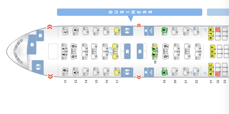 Die Einzelsitze in der Mitte sind für Alleinreisende nach den Fensterplätzen eine gute Wahl.