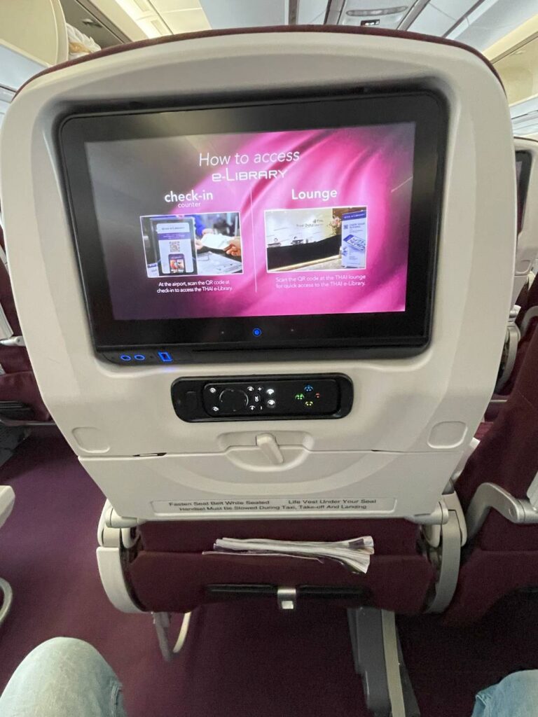 Bei einer Flugzeit von zwei Stunden und 15 Minuten braucht eigentlich niemand ein Inflight-Entertainment (IFE). Da zwischen Bangkok und Singapur aber nun einmal ein Airbus A350 fliegt, ist es halt da. Und bietet die volle Auswahl an Unterhaltungsprogrammen bestehend aus aktuellen, wie klassischen Filmen, Musik und Spielen.
