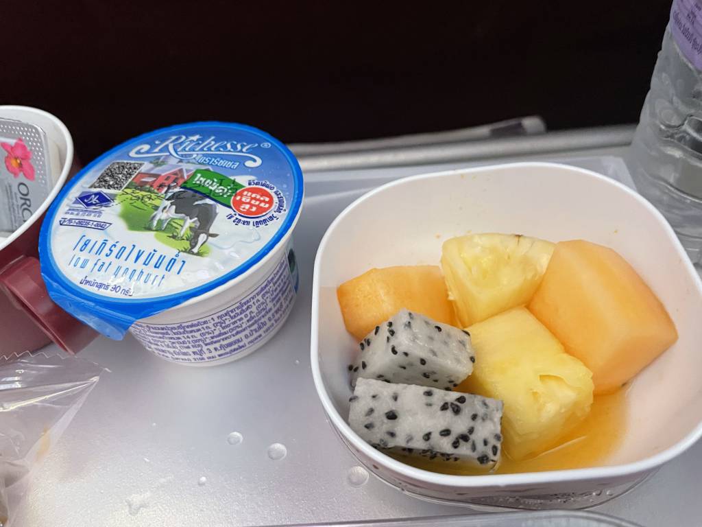 Getränke, ein heißes Essen und Kaffee bzw. Tee innerhalb von etwas mehr als zwei Stunden an die Gäste eines kompletten Airbus A350 austeilen. Bei Lufthansa würde das vermutlich für einen zweiwöchigen Streik sorgen. Unsere Thai Airways Crew zog die Service-Gänge jedoch mit stoischer Ruhe durch. Kein Anzeichen von Stress oder Hektik. Warum auch, denn ein Full-Service-Angebot gehört für die Kabinenbesatzung zum Tagesgeschäft. Egal ob auf einem Flug nach Deutschland oder zwischen zwei südostasiatischen Metropolen.