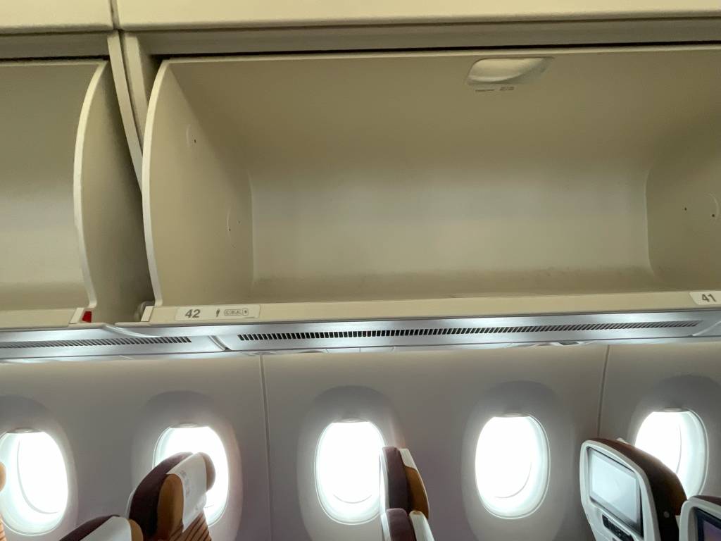 Ob die verfügbaren Sitzplätze deswegen so eingeschränkt waren, ist nur eine Vermutung. Dass in unserem Airbus A350 aber schon Wochen vor dem Abflug nahezu alle Sitzplätze reserviert waren und für uns nur der Mittelblock in Reihe 42 übrig blieb, vermag ich zu bezweifeln.