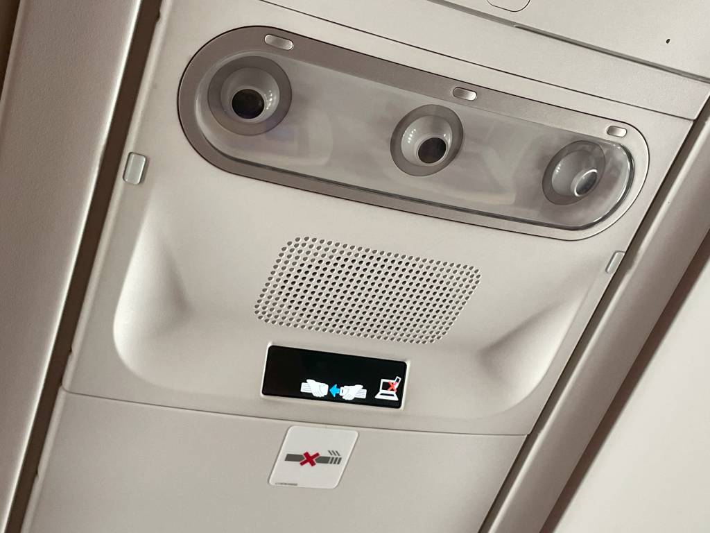Natürlich lagen auf unseren Sitzen keine Amenity-Kits mit Socken und Zahnbürste. Was jedoch nicht fehlte, waren Kissen auf jedem Sitz. Und die sind im Prinzip wirklich unnötig. Denn die Sitze bieten schon ein erhöhtes Maß an Komfort und auf zwei Stunden kann man auch gut ohne auskommen. Meine Frau konnte sich sogar eine extra Decke sichern.