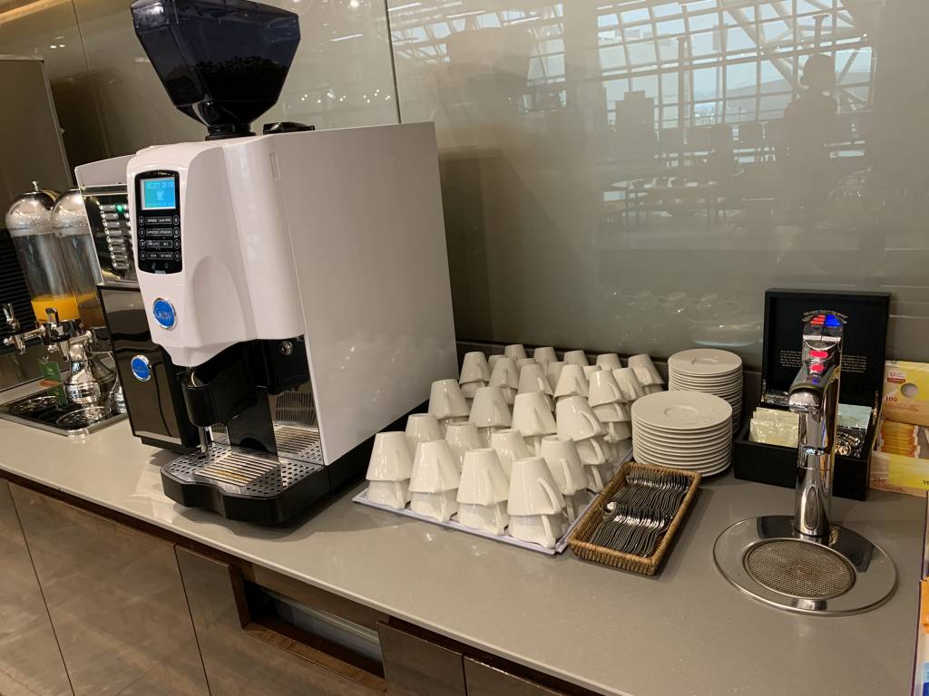 Natürlich findet Ihr in der Lounge auch immer wieder Kühlschränke mit Softdrinks sowie Stationen mit Wasser. Kaffee und Tee können sich Gäste ebenfalls an diversen Stationen selbst zubereiten.