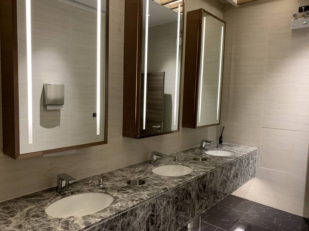 Die Duschen haben wir auf Grund des kurzen Zeitfensters bis zum Boarding ausgelassen. Wir kamen ja auch frisch geduscht vom Hotel an. Vom Zustand der Toiletten konnte ich mir jedoch einen Eindruck verschaffen. Sie waren in top gepflegtem Zustand. So etwas wünsche ich mir in Deutschland in den Flughafen-Lounges.