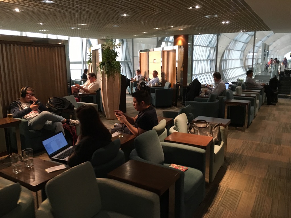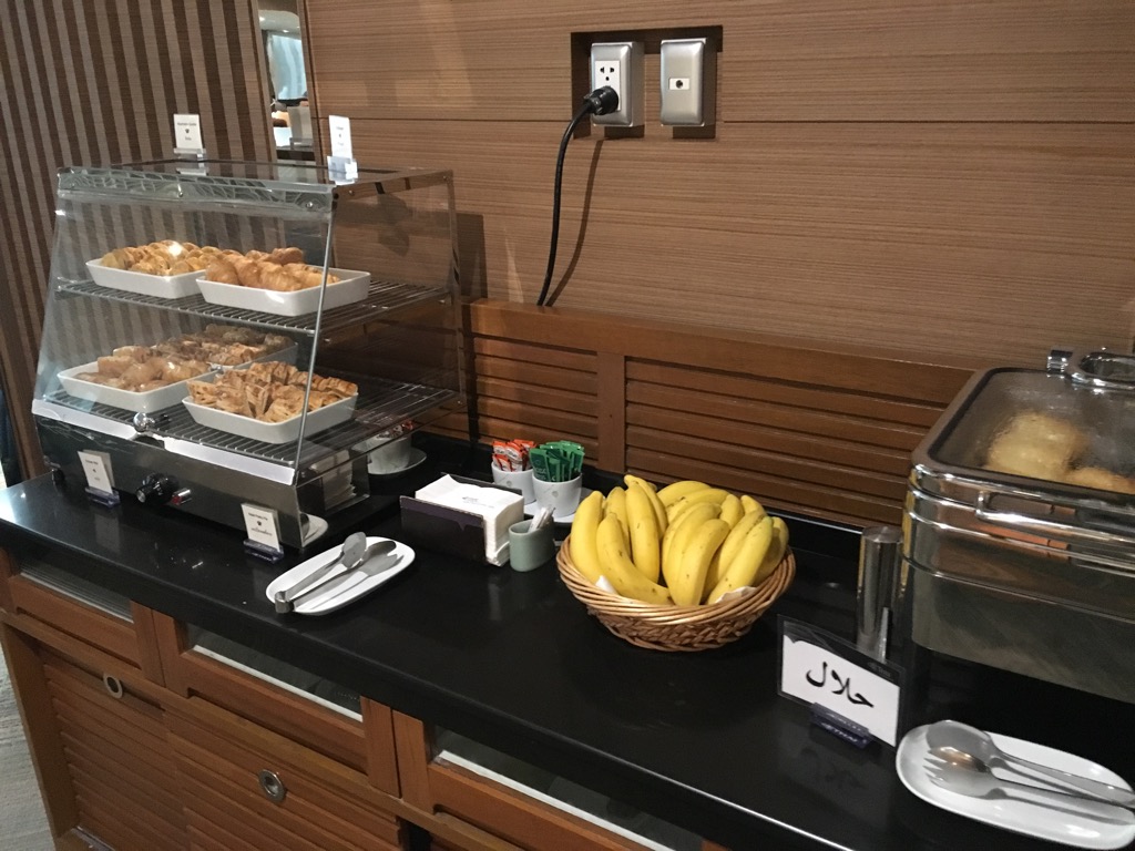 Auch wenn die Auswahl für eine Business Lounge verhältnismäßig groß war, schien mir das Angebot doch recht frei zusammengewürfelt zu sein. Wir haben in der Lounge auch nichts gegessen, da wir zum einen noch satt von unserem Flug waren und zum anderen die Speisen auch nicht extrem einladend auf uns wirkten, was auch insbesondere damit zusammenhing, dass sowohl das Buffet, als auch die Lounge nicht regelmäßig wieder hergerichtet wurden.