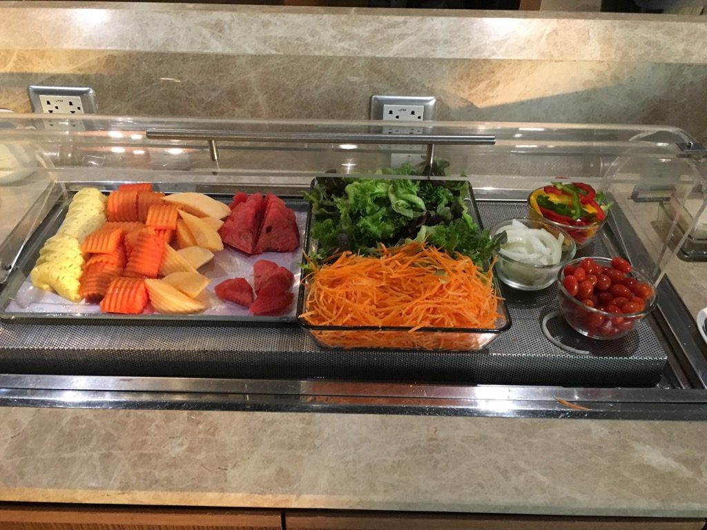 Auch wenn die Auswahl für eine Business Lounge verhältnismäßig groß war, schien mir das Angebot doch recht frei zusammengewürfelt zu sein.  Wir haben in der Lounge auch nichts gegessen, da wir zum einen noch satt von unserem Flug waren und zum anderen die Speisen auch nicht extrem einladend auf uns wirkten, was auch insbesondere damit zusammenhing, dass sowohl das Buffet, als auch die Lounge nicht regelmäßig wieder hergerichtet wurden.