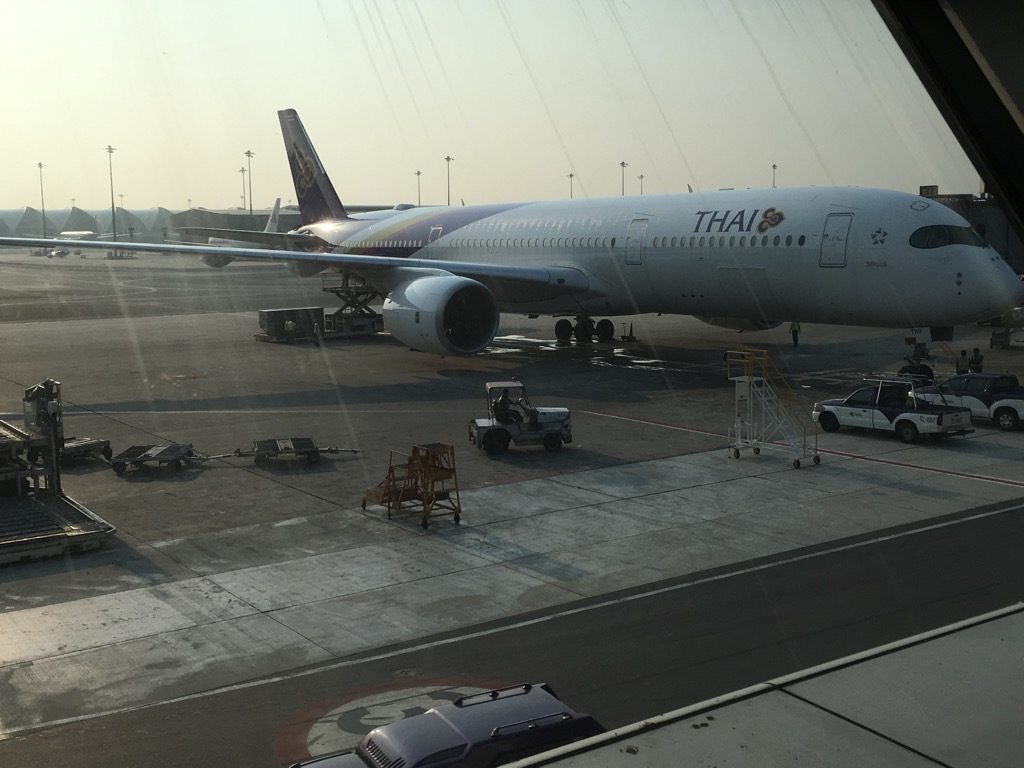 Nachdem wir mit unserem Thai Airways Airbus A350 Flug recht früh am Morgen in Bangkok gelandet sind, haben wir die Sicherheitskontrolle für Transferpassagiere durchlaufen und uns auf den Weg Richtung des Abfluggates unseres Weiterfluges nach Bali gemacht. In Bangkok gibt es eine ganze Reihe von Star Alliance Lounges, allerdings befand sich direkt über unserm Abfluggate die Thai Business Lounge Bangkok Terminal C, welche wir daher benutzt haben. Auf dem Weg zur Lounge konnten wir noch einmal einen Blick auf unseren wunderschönen Airbus A350 werfen.