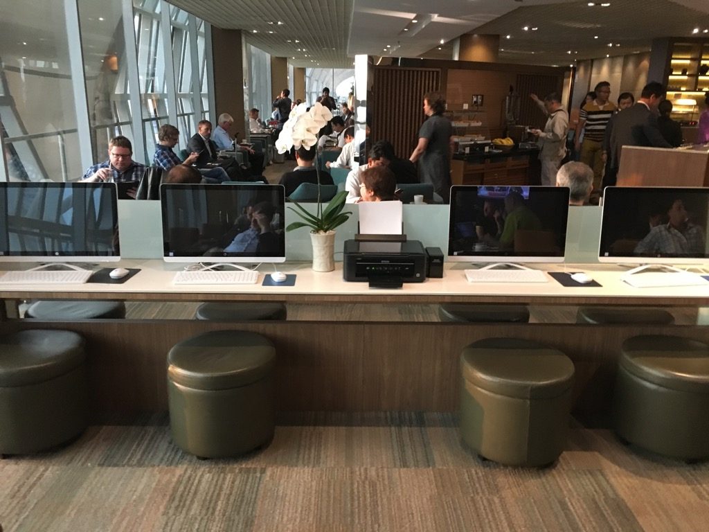 Neben kostenlosem WIFI gab es in der Lounge auch ein kleines Business Center, mit iMacs und einem Drucker. Die Hocker im Business Center sind allerdings die unpraktischsten Sitzgelegenheiten, welche ich seit langem in einem Business Center gesehen habe. Thai geht hier scheinbar nicht davon aus, dass man hier wirklich lange arbeiten möchte.