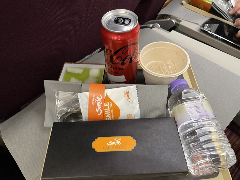 Beim Catering merkt man dann doch, dass Thai Smile eher eine Budget Airline, als eine Full Service Airline ist. Zwar gibt es sowohl in der Economy Class, als auch in der Business Class ein kostenloses Essen und kostenlose Getränke, aber diese entsprechen nicht dem was Thai Airways selbst einmal angeboten hat.