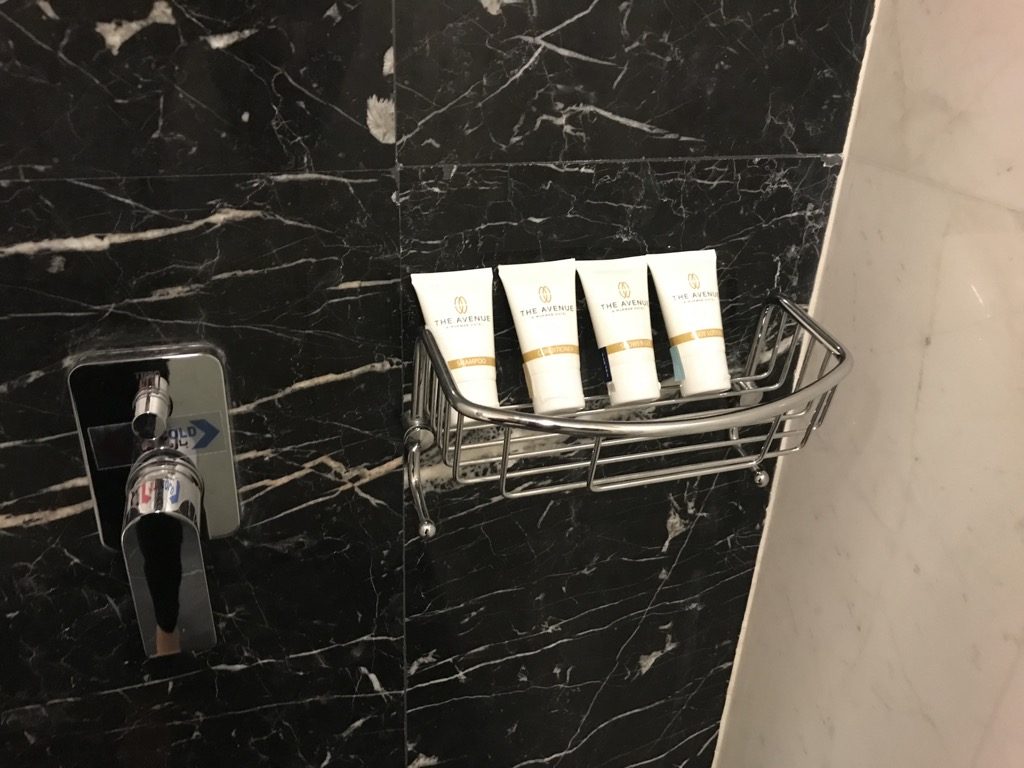 Neben dem Schrank befand sich das Badezimmer, welches mit einem großen Waschbecken mit angenehm viel Ablagefläche ausgestattet war. Hier lagen bereits eine vollständige Auswahl an Amenities bereit, welche täglich aufgefüllt wurden. Amenities im Bad mag ich persönlich sehr gerne, denn so spart man sich einiges an Gepäck. Und auch die Gefahr, dass Kosmetika auslaufen ist hiermit gebannt.