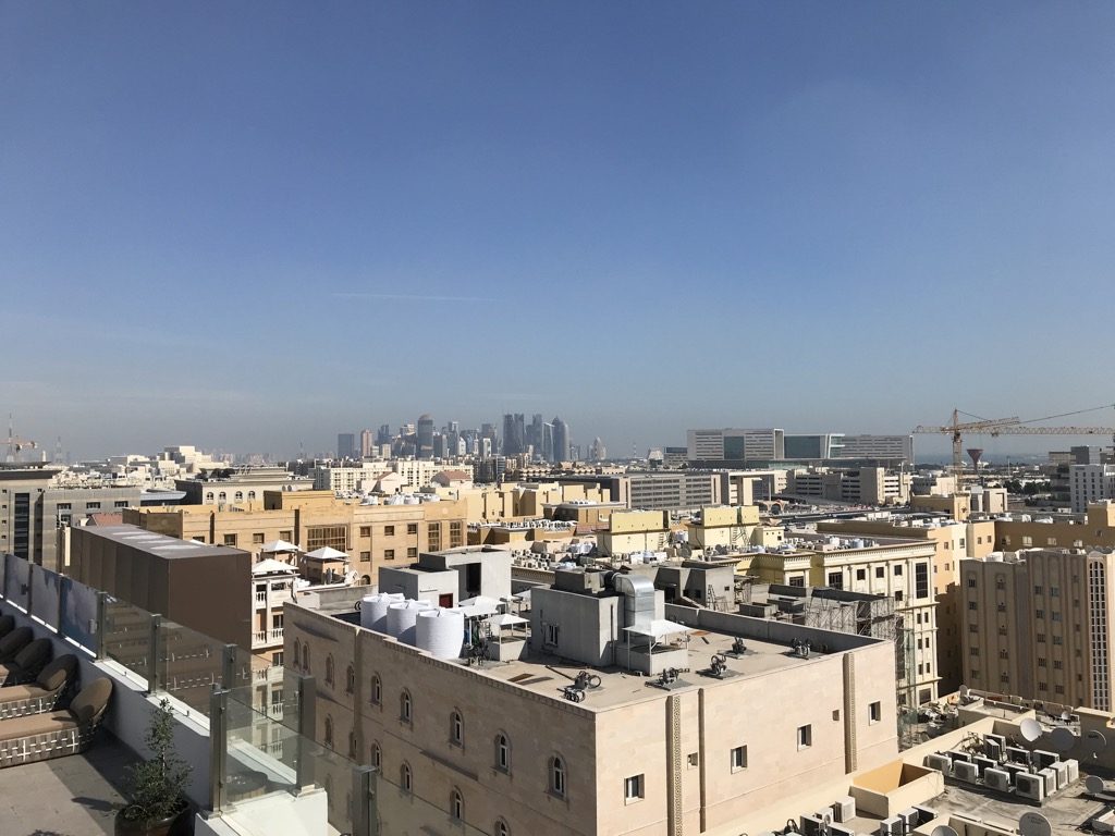 Nach meinem sehr angenehmen Flug mit der Qatar Airways QSuite nahm ich mir am Flughafen ein Taxi und machte mich auf den Weg zum The Avenue A Murwab Hotel. Doha ist eine komplette Baustelle. Alles wird für die WM 2022 vorbereitet, renoviert und umgebaut. Nach einer etwa 20 minütigen Fahrt mit dem Taxi fuhren wir am Hotel vor, dort wurde mir direkt mit den Koffern geholfen.