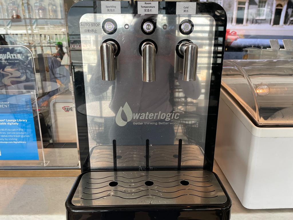 Vorher waren wir mit dem Priority Pass in der Chase Sapphire Lounge, immerhin lt. Priority Pass die beste Lounge im asiatischen Raum. Sie ist zwar größer als die Centurion aber gerade das Catering war wie beschrieben international unauffällig bis langweilig.