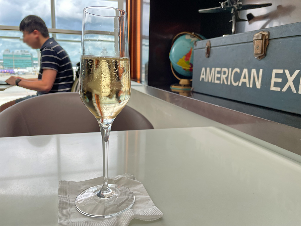 Mit der American Express Centurion Loung in Hong Kong haben Inhaber der Platinkarte (und aufwärts) eine tolle Option am Flughafen. Gerade dann, wenn man keinen Zutritt zu den Airline Lounges hat. Zu Hauptreisezeiten kann es wahrscheinlich vorkommen, dass die Lounge voll wird und aufgrund der offenen Bauweise nicht zum Verweilen einlädt. Für alle, die sich vor ihrem Flug noch mit Ethanol betanken wollen, ist diese Lounge in Hong Kong konkurrenzlos.