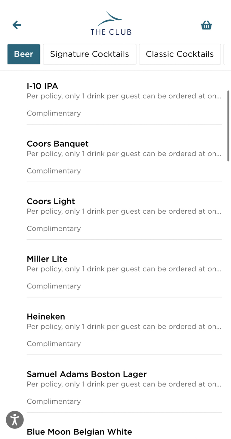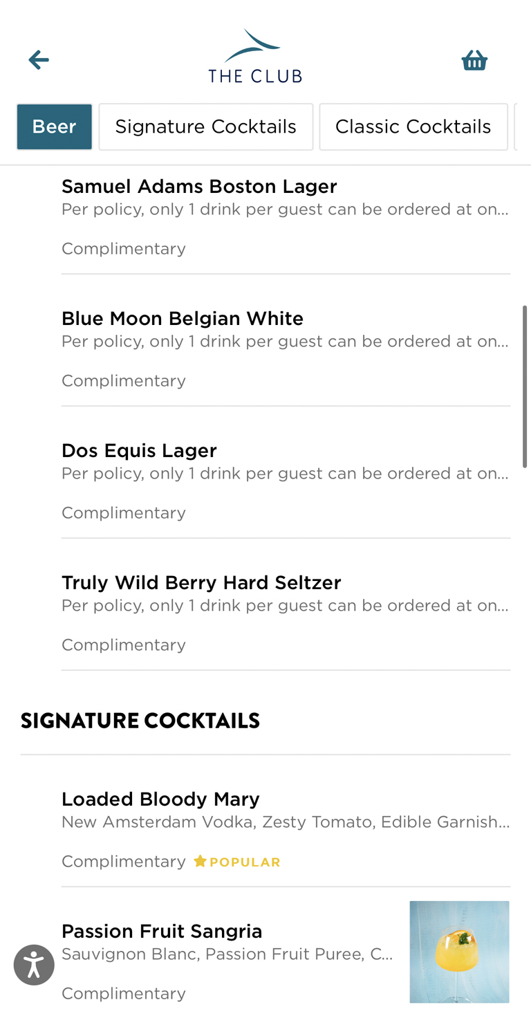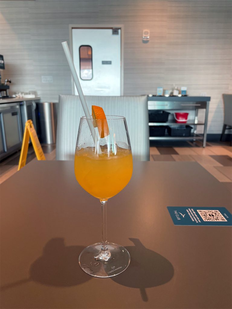 Das Highlight ist hier die Bar. Die Auswahl ist groß und alkoholische Getränke sind bis zum Abwinken inkludiert. Bevor man jedoch an das Getränk kommt, muss man sich im WLAN der Lounge einloggen und einen QR Code scannen. Dank diesem gelangt man auf die Bestellseite der Lounge. Dort kann man direkt aus der elektronischen Karte heraus ordern. Fertige Getränke werden dann vom Personal an den Tisch bzw. Barhocker bestellt. Damit das ganze nicht allzu schnell zu einer Ballermannfahrt ausartet, gibt es jeweils nur ein alkoholisches Getränk auf einmal.