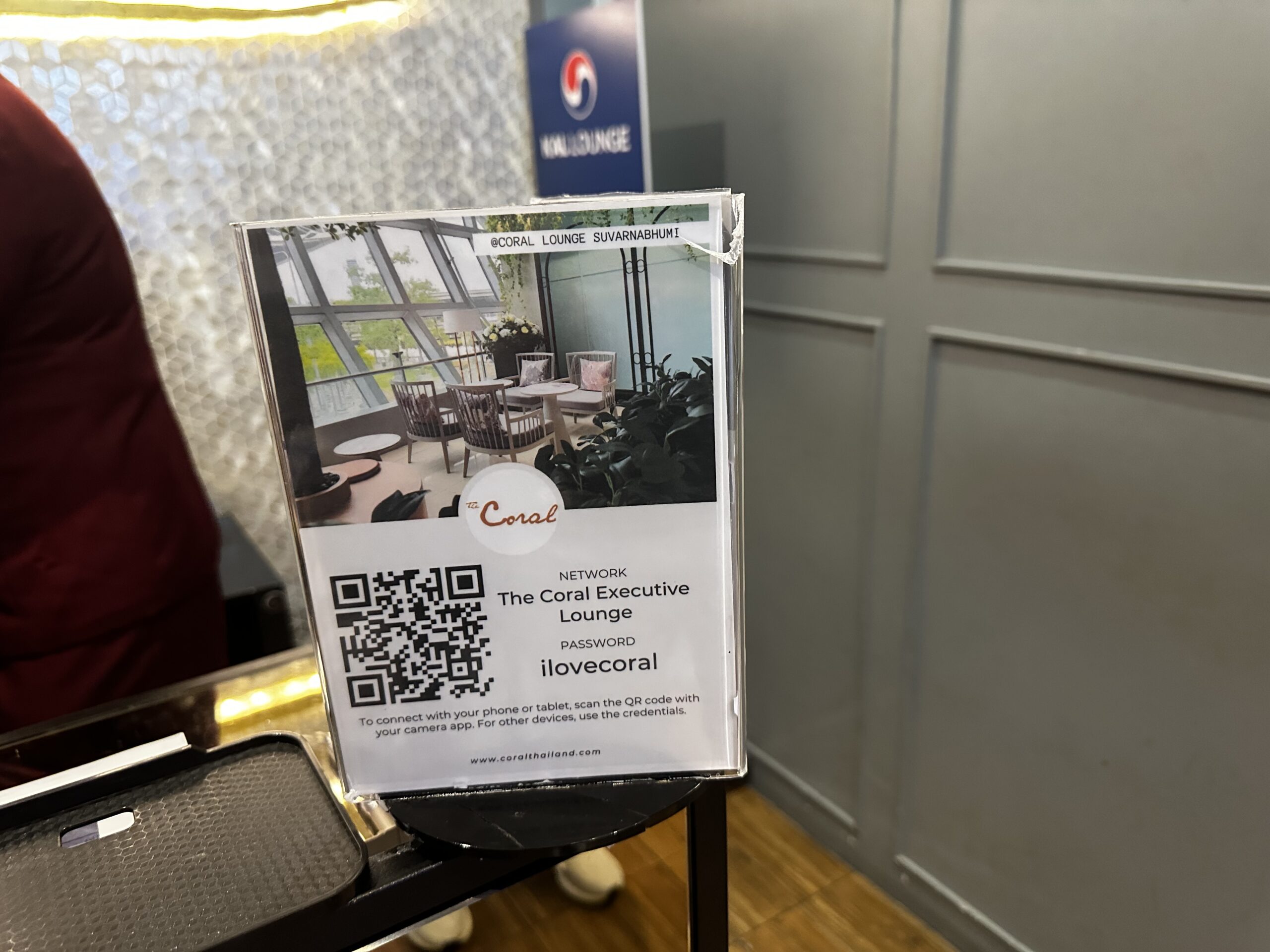 Die Lounge ist im Sicherheitsbereich und dort gut ausgeschildert. Eine Etage über den Gates sind auch die anderen Einrichtungen wie die von THAI. Es gibt zahlreiche Lounges des Anbieters Coral, in dieser kann man täglich von 9 Uhr morgens bis Mitternacht loungen.