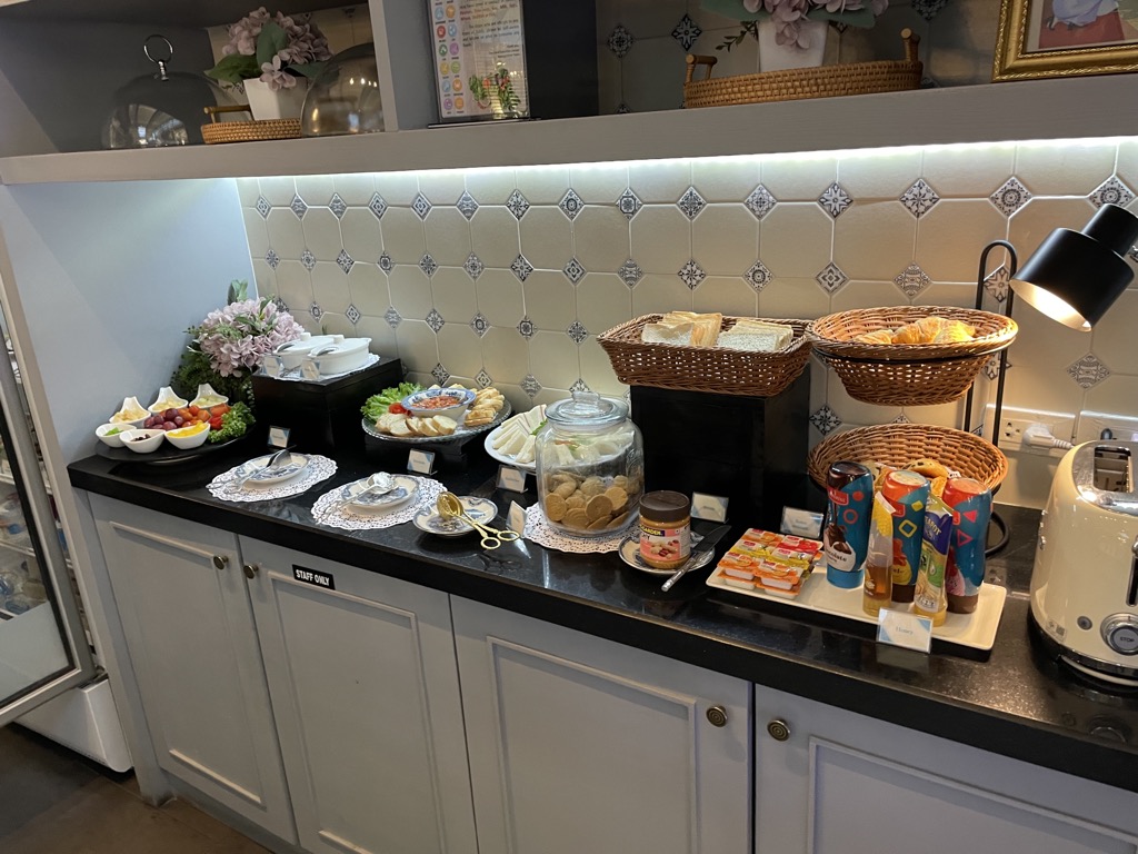 Nachdem diese Lounge recht spontan eröffnet wurde, dauerte es einige Zeit bis man dass Buffet in der Lounge bestückt hatte. Sofort standen aber die Kühlschränke mit Softdrinks zur Verfügung und an der Bar konnte man sich auch alkoholische Getränke (inkl. Cocktails) und Kaffee, sowie Tee zubereiten lassen.