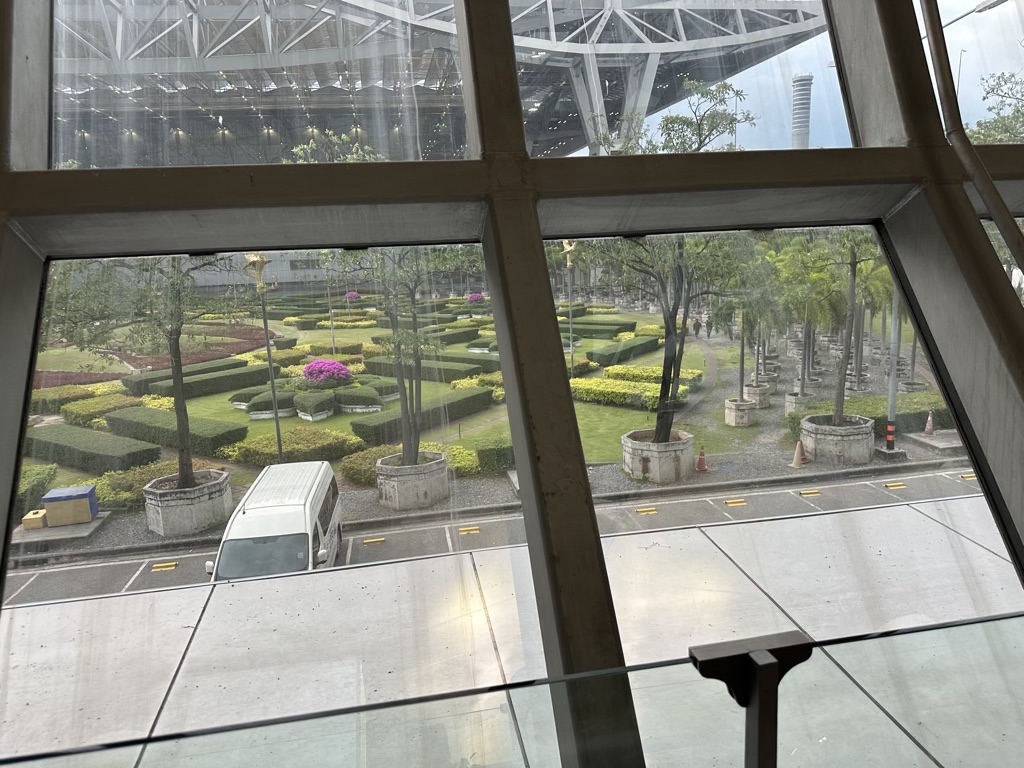 Die Lounge besteht im Prinzip durch einen großen recht offenen Raum mit sehr hoher Decke. Hier findet man definitiv viel Tageslicht und einige unterschiedlich gestaltete Sitzbereiche, die mit Raumtrennern optisch voneinander abgetrennt sind. Der Ausblick war auch sehr nett!