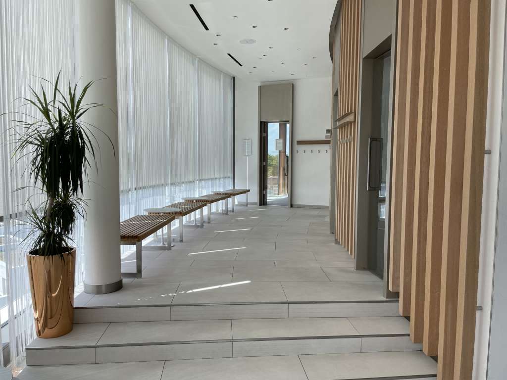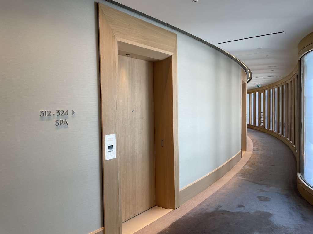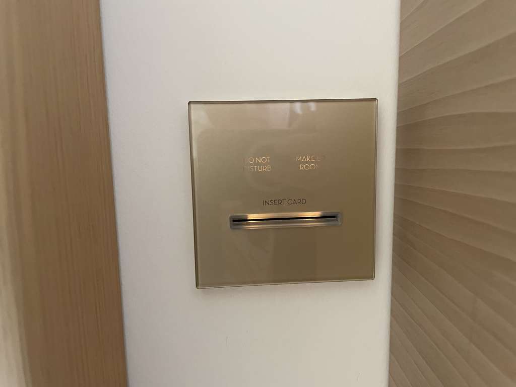 Der Fahrstuhl brachte mich so dann auch auf die dritte von sieben Etagen. Durch die Architektur des Gebäudes, die von fließenden Formen und organischen Linien geprägt ist, machte auf der Etage zunächst etwas Orientierung nötig. Durch die gute Beschilderung war Zimmer 309 dann aber schnell gefunden. Ein Sensor neben der Tür öffnete den Schließmechanismus, als ich meine Zimmerkarte dagegen hielt. Etwas schwieriger war es, den Strom im Zimmer einzuschalten. Der typische Kartenschlitz war gut in einer Nische in der Nähe der Tür versteckt.