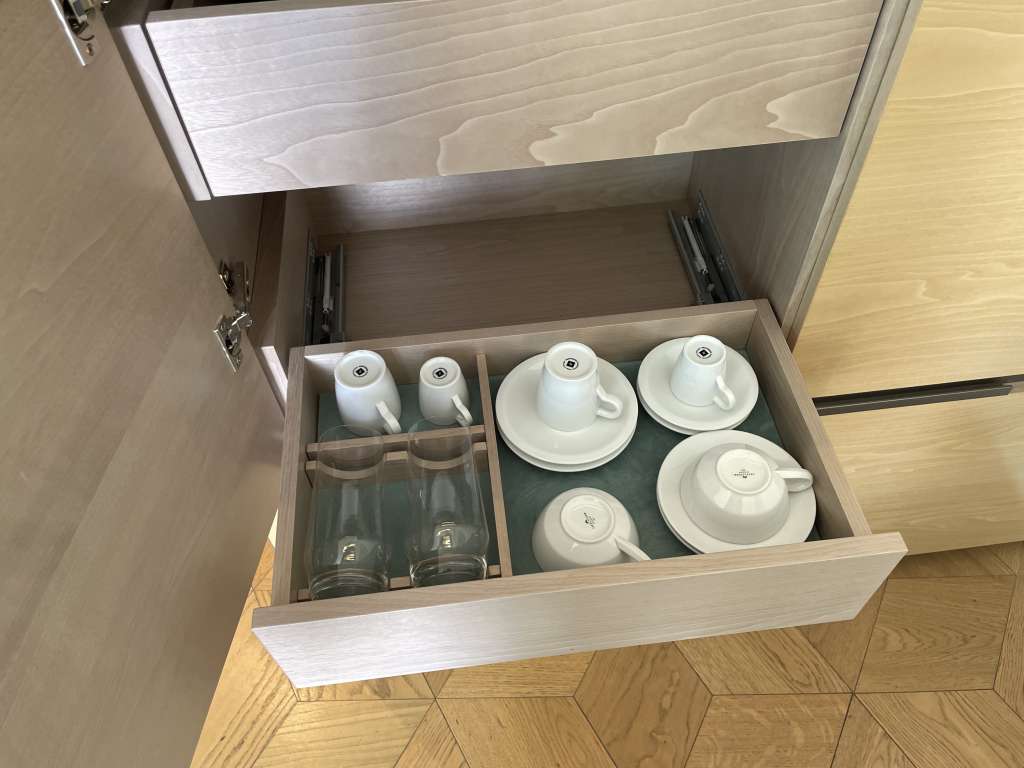 Der Deluxe Room bietet zudem eine gefüllte Minibar (kostenlos, Softdrinks, Bier sowie süße und salzige Snacks), einen Kaffee- und Teezubereitungsbereich sowie einen begehbaren Kleiderschrank mit Safe. Kleine Details wie frische Blumen, Kunstwerke an den Wänden und liebevoll ausgewählte Dekorationen tragen zur besonderen Atmosphäre bei.