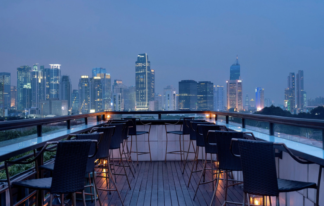 Diese wird abends rege genutzt, über der Bar befindet sich ein zusätzlichen Sitzbereich mit einmaliger Aussicht auf Jakarta.