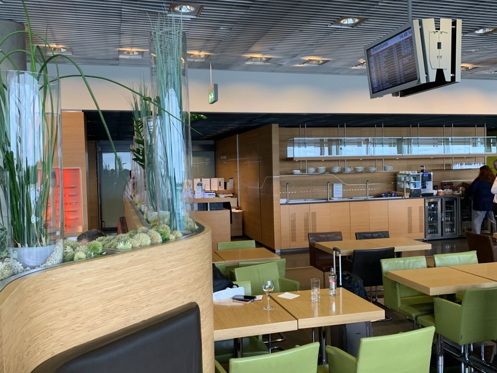 Also gingen wir endlich zur Rezeption und informierten die Mitarbeiterin, dass wir derzeit noch keine Boardkarten für unseren Weiterflug ab Luxembourg haben.  Aber unsere Buchung sei in der Business Class der Lufthansa mit dem Abendflug von Luxemburg nach Frankfurt. Die Mitarbeiterin an der Rezeption durchforstete ihre Liste und teilte uns mit, dass wir ab vier Stunden vor Abflug, also ab 15:00 Uhr in die Lounge dürften. Für Priority Pass Gäste kannte ich ähnliche Regelungen bereits, für Business Class oder Status-Gäste allerdings noch nicht. Daher fragte ich zur Sicherheit noch mal nach, ob dies auch für Business Class Gäste gelte. Mit der Antwort zogen wir unverrichteter Dinge wieder ab.