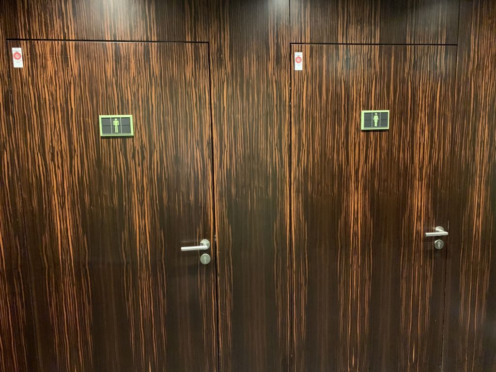 Angenehm ist auf jeden Fall, dass die Lounge am Flughafen Luxemburg eigene Toiletten hat. Sehen wir jetzt mal davon ab, dass eines der Pissoirs im Wartungsmodus war, waren die Toiletten bei unserem Besuch auch sauber. Duschen gibt es aber leider nicht.