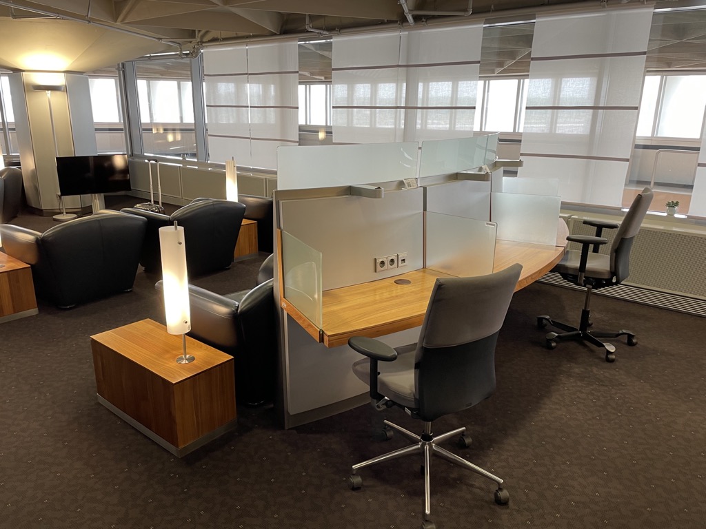 Daneben gibt es auch noch Arbeitsbereiche und die Barstühle, genau wie man es aus Lufthansa Lounges kennt und grundsätzlich finde ich dieses Konzept auch nicht schlecht, wenn auch inzwischen etwas altmodisch wirkend.
