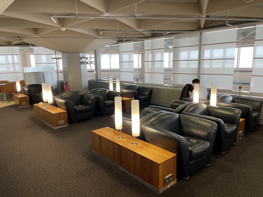 In der Lounge erkennt man noch deutlich den ehemaligen Betreiber der Lounge und man hat auch das Mobiliar der Lufthansa weitestgehend übernommen. So findet man die große Sessellandschaften mit den alten bekannten blauen Sesseln in etwa der Hälfte der Lounge.