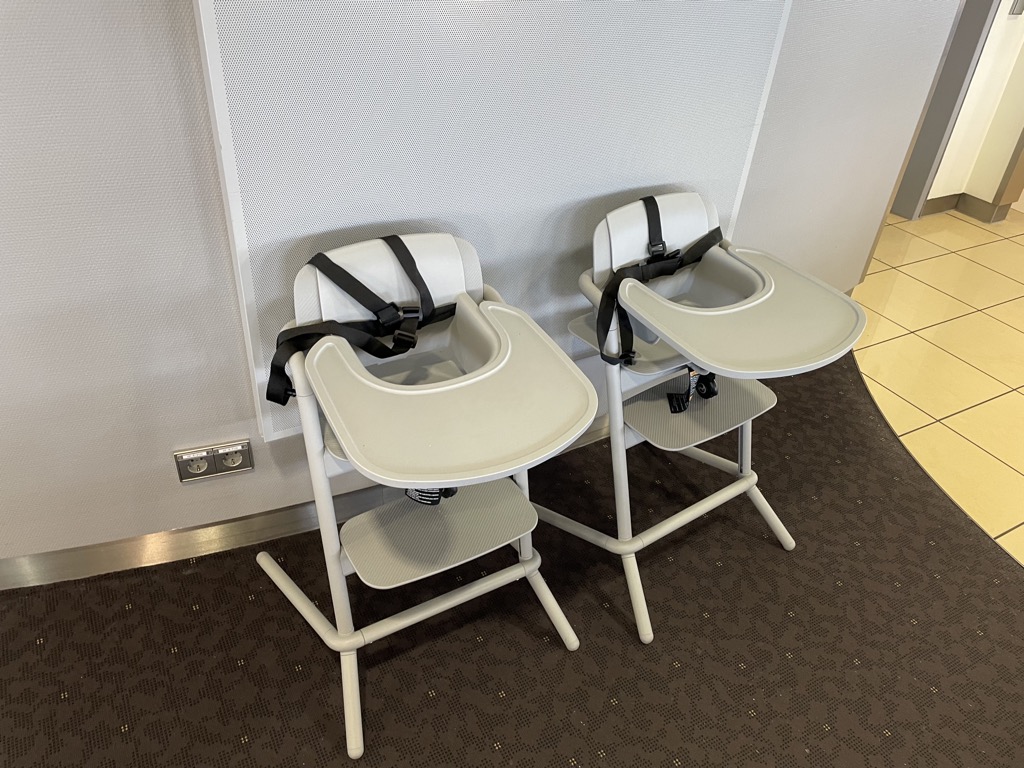 Daneben sind mir auch die Hochstühle für Kinder aufgefallen, was man nicht zwingend in jeder Lounge auf der Welt findet.