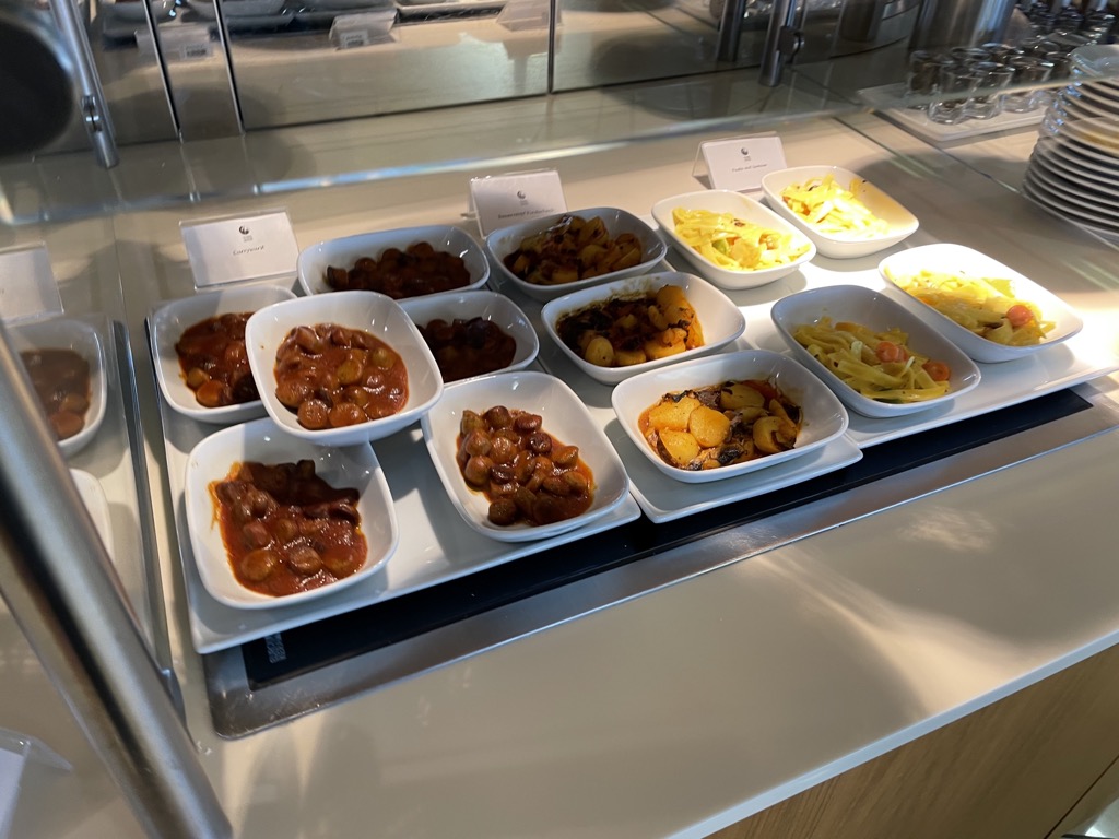 Speisen und Getränke werden in der Lounge auf dem Buffet zur Selbstbedienung angeboten. Dabei war quasi alles einzeln portioniert und meist auch abgepackt. Ob dies noch eine Corona Maßnahme ist oder einfach dem doch recht geringen Durchsatz in der Lounge geschuldet ist, kann ich nicht bewerten, aber ich sehe hier grundsätzlich nichts Schlechtes.