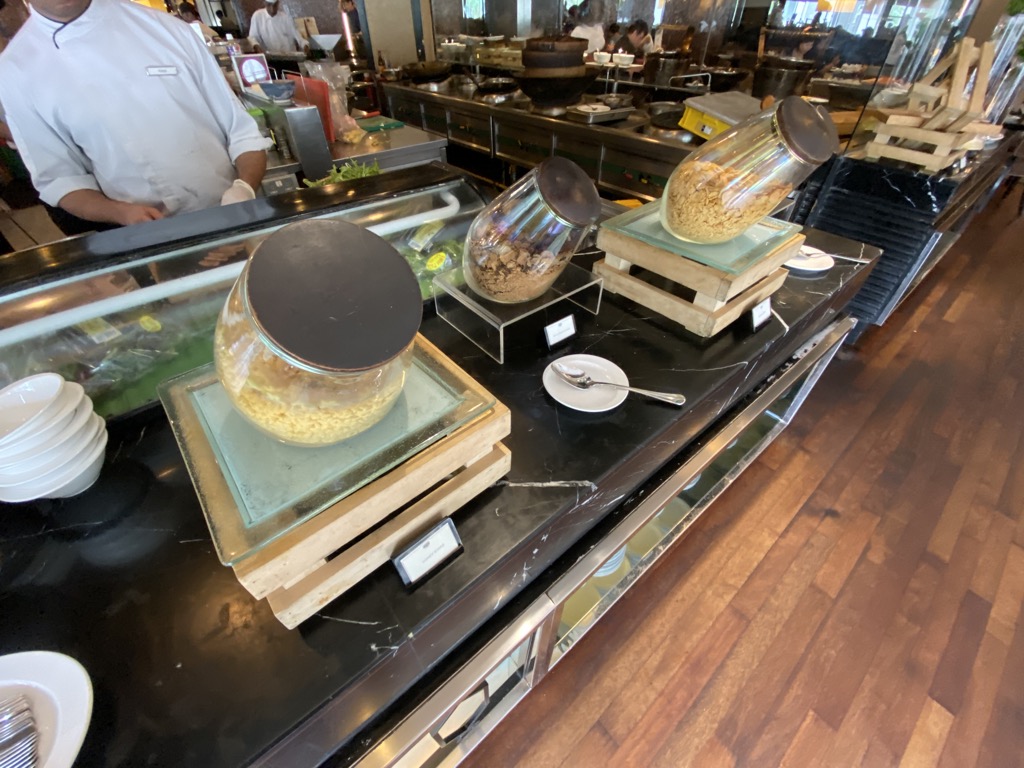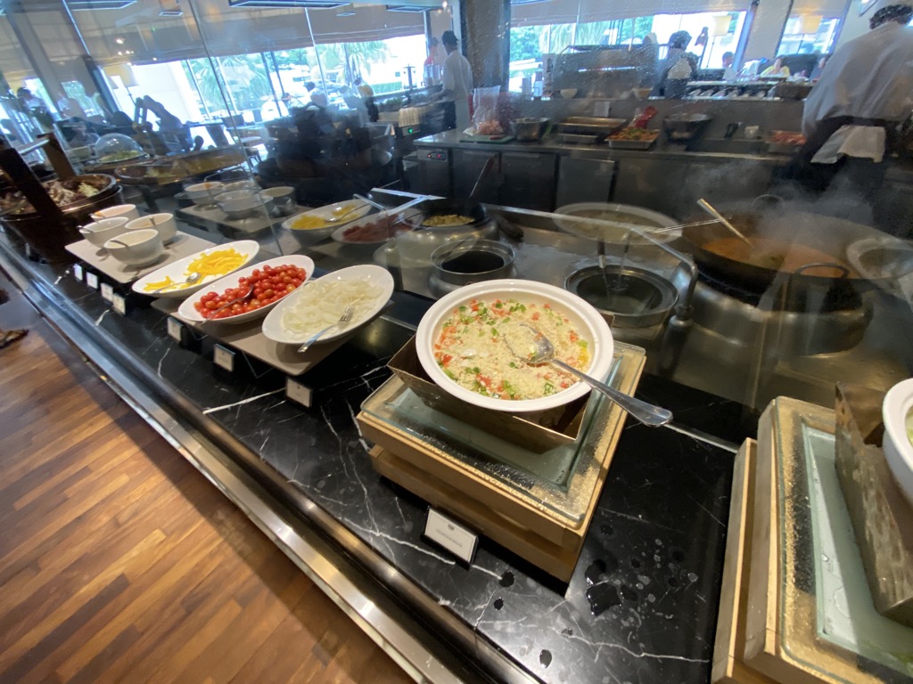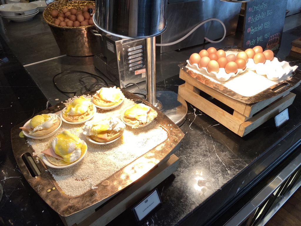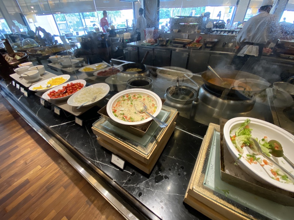 Es gibt westlichere Speisen, ein Buffet mit malayischen, libanesischen, arabischen und chinesischen Spezialitäten. Natürlich gab es auch eine Station, an der Köche frische Eierspeisen und Pancakes / French Toasts zubereitet haben.