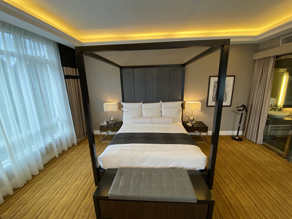 Zentrales Element der Junior Suite war natürlich das großzügige Bett, auf dem wir sehr gut geschlafen haben. Es hatte eine durchgängige Decke und ausreichend Kissen. Das einzige was uns vor allem nachts aufgefallen ist, war dass das Hotel generell sehr hellhörig ist. Wenn Türen geknallt wurden, haben wir das deutlich gehört.