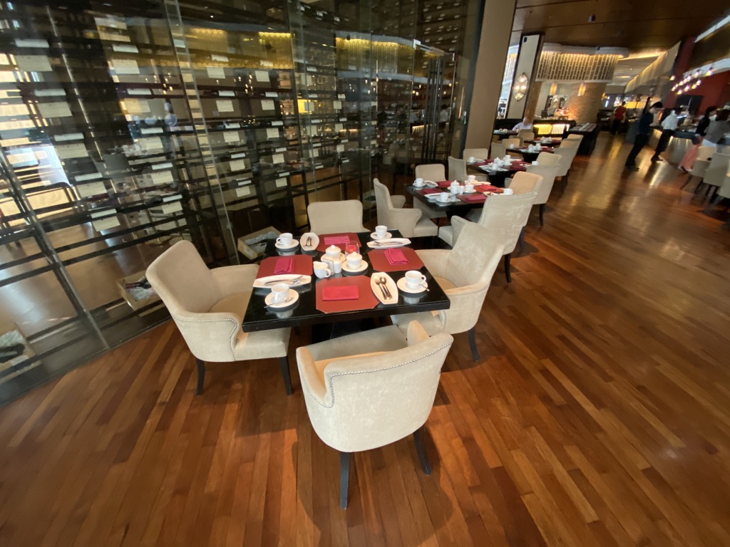 Hier sind wir auch bei dem für uns größten Schwachpunkt des Hotels. So waren wir bei der Lounge im Marriott Kota Kinabalu sowohl von der Einrichtung als auch vom Catering und dem Service beeindruckt – hier war es beinahe umgekehrt. Aufgeteilt war die Lounge in drei Räume, die jeweils mit Gruppen aus Polstermöbeln ausgestattet waren. Im hintersten Raum gab es ein kleines Buffet, welches die gesamte Zeit über nur Softdrinks, Kaffee, Tee und Cracker bot.