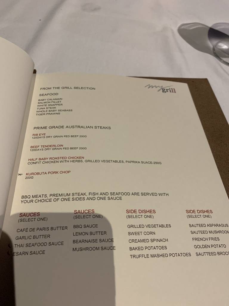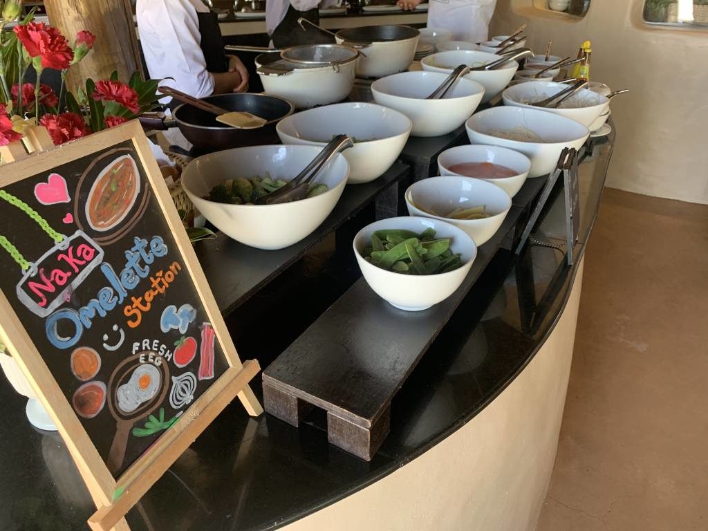 Auf den Tischen stehen während der Frühstückszeiten von 6:30 bis 11:00 Uhr Kärtchen mit „made to order“-Optionen. Diese gehen deutlich über die üblichen Eier-Speisen hinaus. So könnt Ihr Euch zum Beispiel zunächst eine Portion gegrillten Lachs und danach noch eine Portion Steak und ein Naka Island style french toast mit Schokolade, Kokos und Mascarpone bestellen.