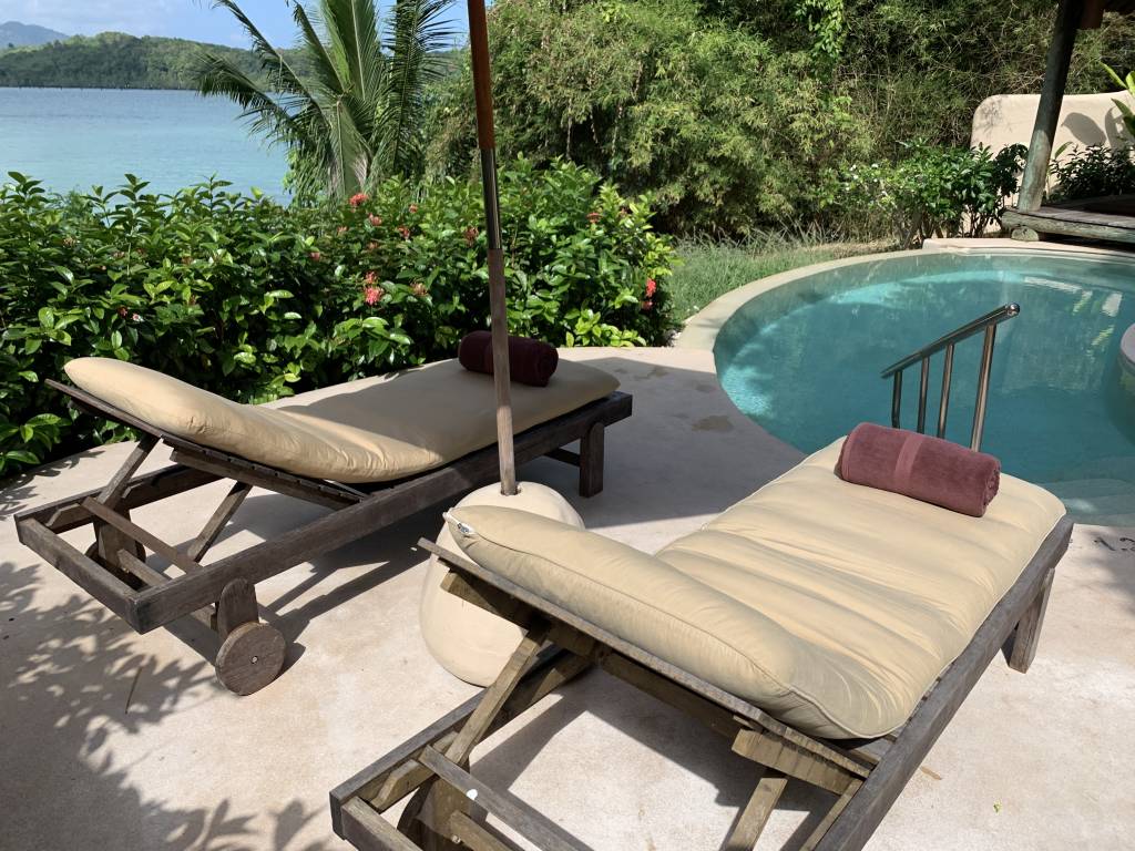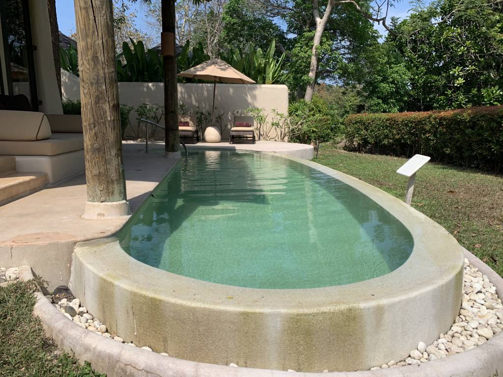 Liegen sind sowohl am Pool als auch am Strand ausreichend vorhanden. Selbst wenn wir erst gegen Mittag zum Strand gegangen sind, haben wir noch ein schattiges Plätzchen unter einem der Bäume oder Sonnenschirme gefunden. Einige Sonnenliegen befinden sich auch in einem noch flacheren Teil des Pools. Für den unwahrscheinlichen Fall, dass Gästen hier zu viel Betrieb ist, gibt es noch den Sala Pool in Mitten des tropischen Gartens des Resorts. Hierhin verirren sich wirklich nur wenige Gäste, so dass man fast ungestört ist.