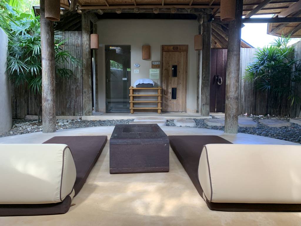 Kein Luxus-Resort ohne Spa und so verfügt das Naka natürlich auch über ein voll ausgestattetes Spa. Das Gebäude in dem die Massage-Anwendungen stattfinden, befindet sich in einem tropischen Garten innerhalb des Resorts. Während es im Resort an sich schon alles andere als laut und geschäftig ist, kann man hier so richtig abschalten. Entweder bei einer Spa-Behandlung oder auch in der Sauna oder dem Eisraum. Gerade letzteres kann nach einem Tag in der heißen Sonne Thailands eine willkommene Abwechslung sein.