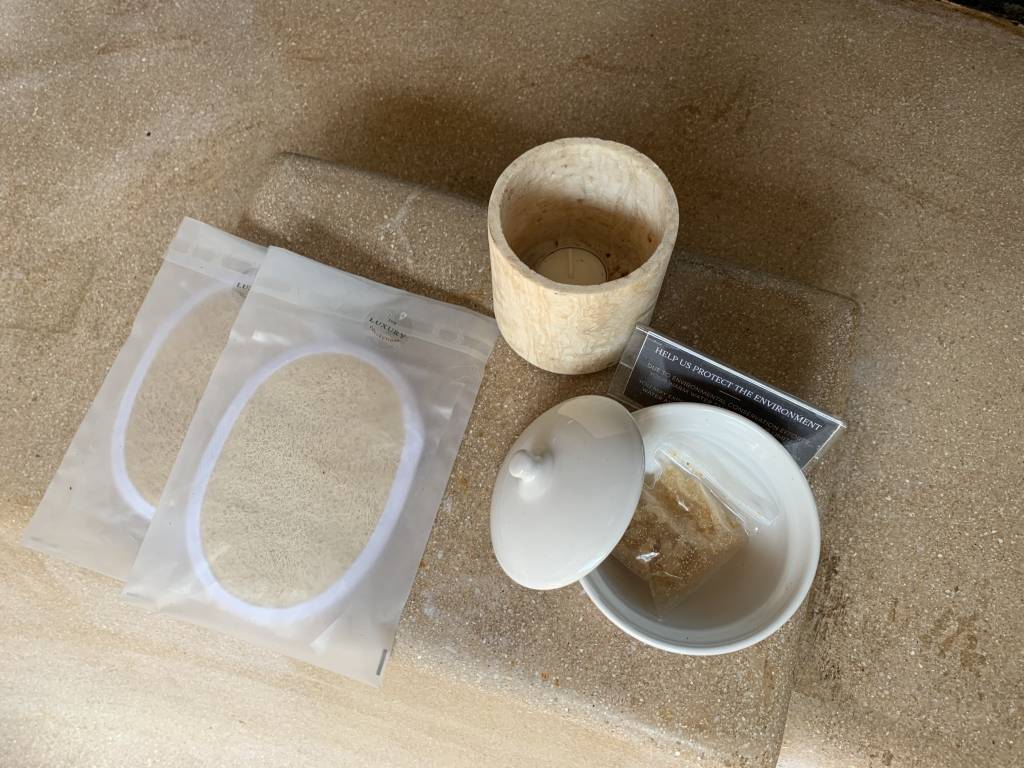 Die Pflegeprodukte sind von der Marke Thann. Dabei handelt es sich allerdings um eine andere Sorte als die sonst bei Marriott bekannte Duftlinie.