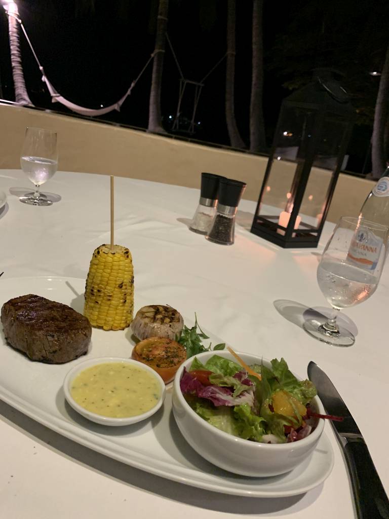 Das Tonsai-Restaurant serviert mittags und abends einheimische Speisen. Das Restaurant MyGrill direkt daneben hat Premium-Steaks und lokales Seafood auf der Speisekarte. Hier könnt Ihr auch ein romantisches Dinner direkt am Strand genießen. Meerblick habt Ihr aber von allen Restaurants aus.