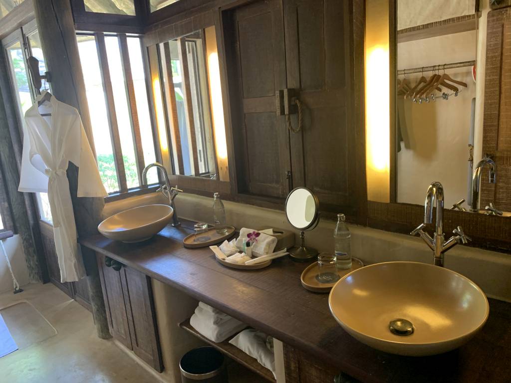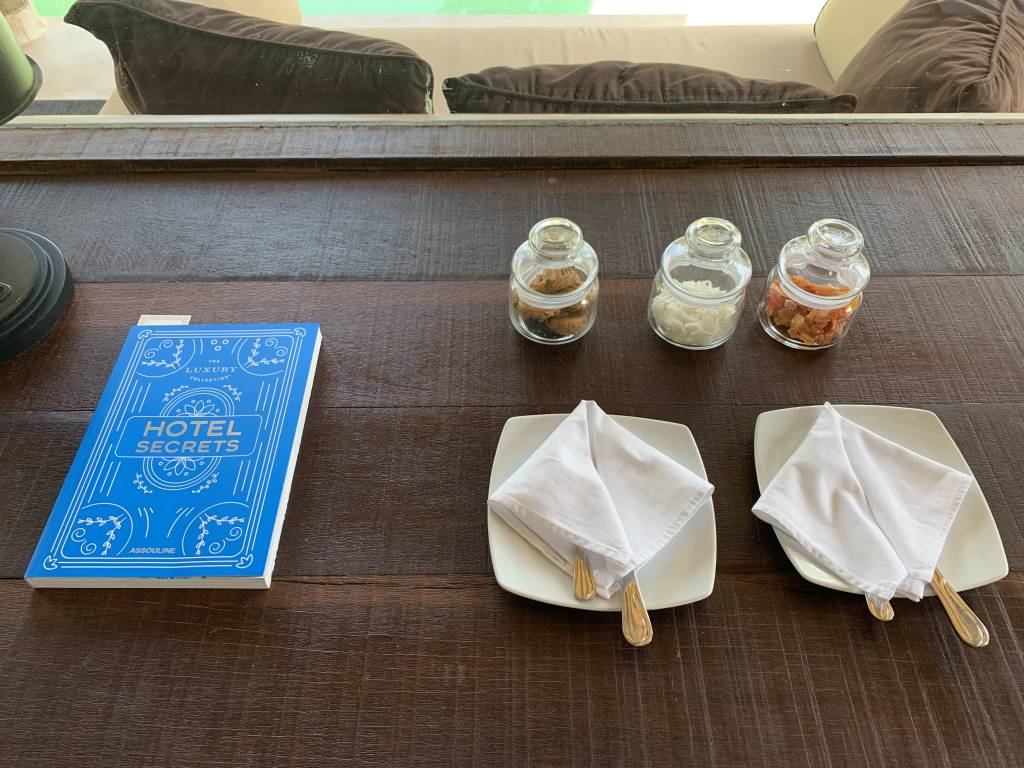 Auch der Turn-Down-Service hat diesbezüglich gut geklappt. Und hier war der Turn-Down-Service auch wirklich sinnvoll. Es wurde nicht nur das Bett aufbereitet, sondern auch das Moskito-Netz um das Bett gehängt und einige Teelichter aufgestellt. Direkt nach der ersten Nacht hat das House-Keeping erkannt, dass wir abends gerne noch etwas unter dem Pavillon liegen und ihn daher täglich mit neuen Handtüchern ausgestattet. Nur eines der vielen kleinen Details.