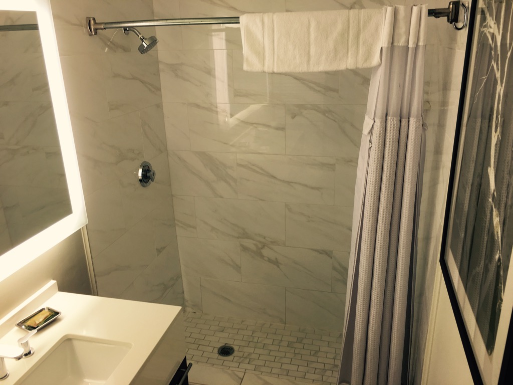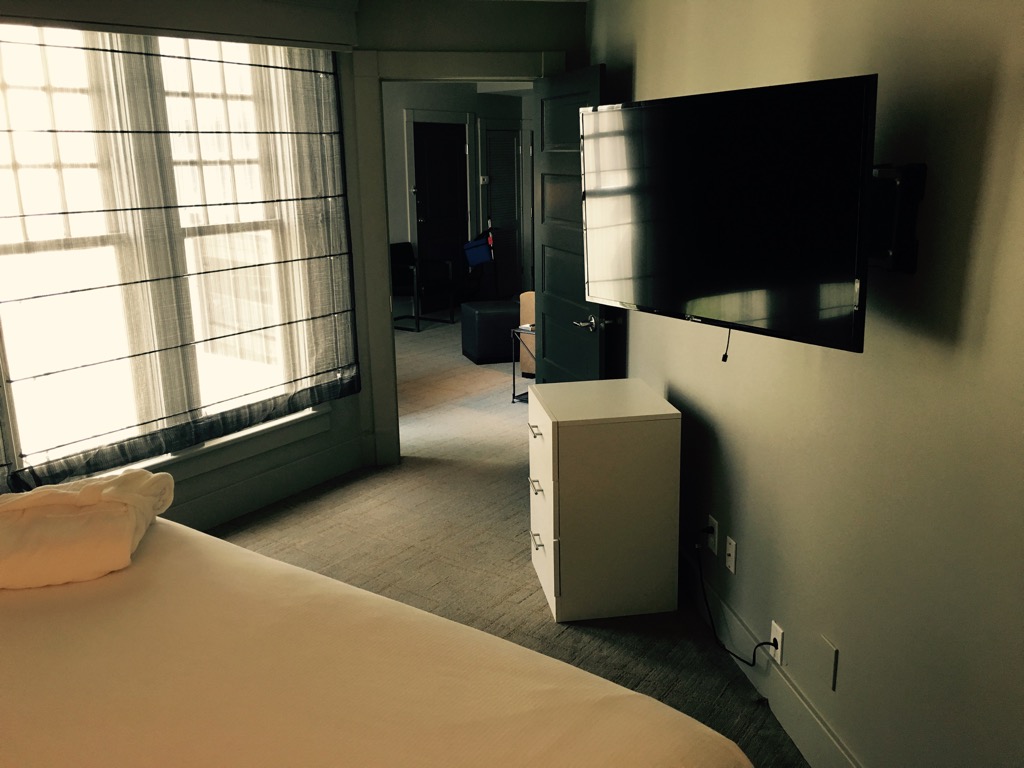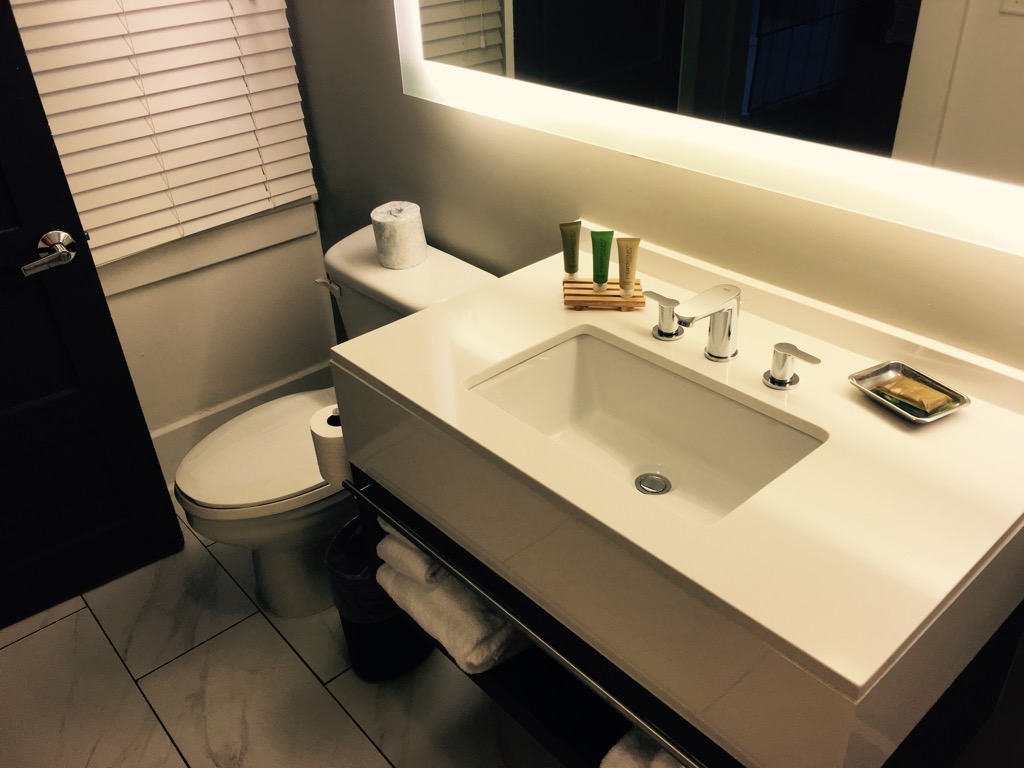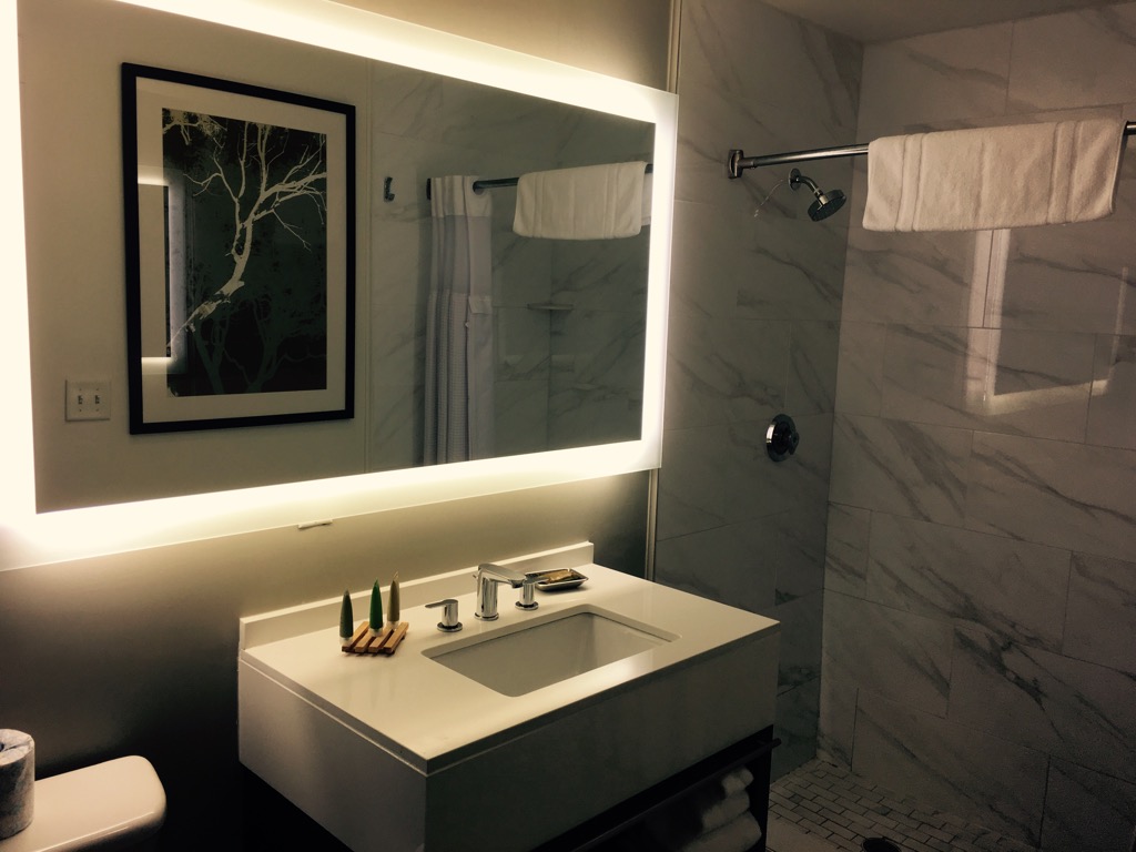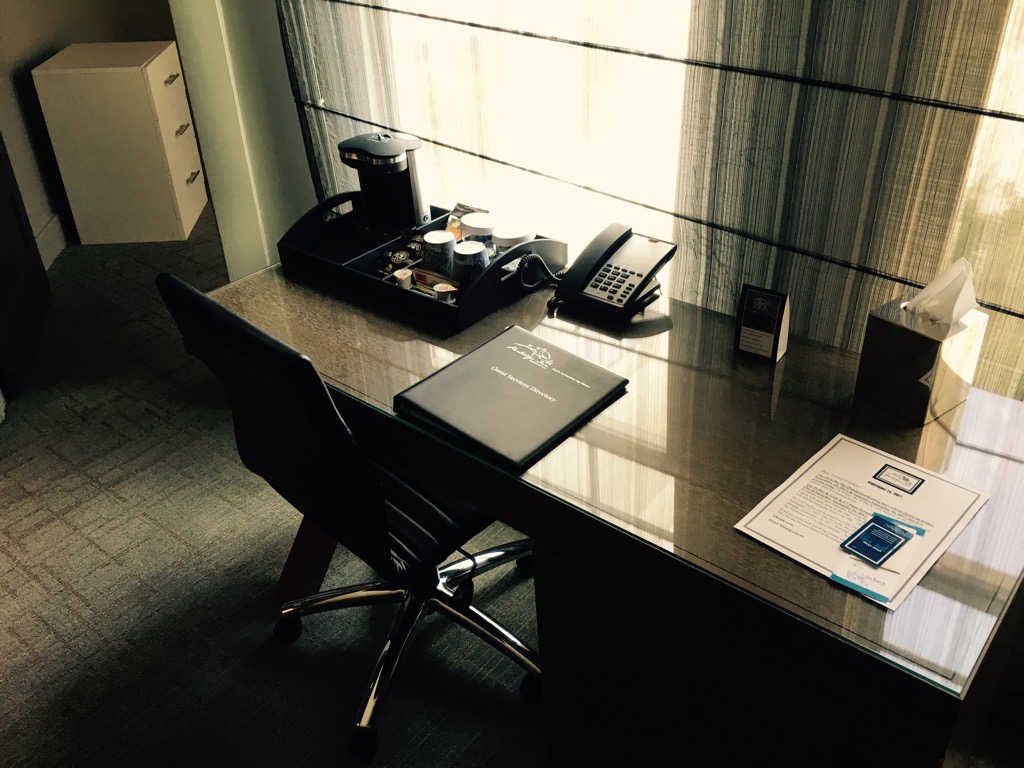 Etwas obskur fand ich, dass der Kühlschrank unter dem Schreibtisch war und auch die in den USA übliche Kaffeemaschine sich auf dem Schreibtisch befand. In meinen Augen war dies vielleicht nicht der ganz optimale Ort, allerdings arbeiten wohl die wenigsten wirklich lange am Schreibtisch eines Hotelzimmers.