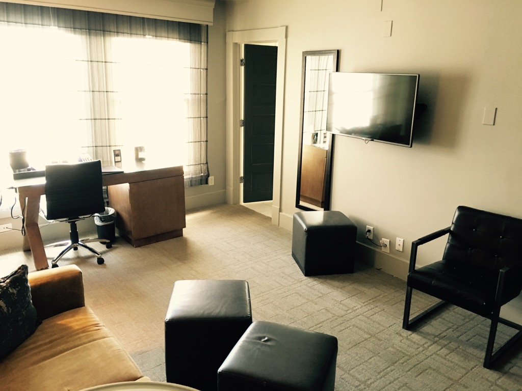 Meine one Bedroom Suite befand sich im vierten Stock des Hotels. Direkt nach dem Eintreten in das Zimmer befand man sich sich schon im Wohnzimmer der Suite, in welcher eine Couch, ein Fernseher und ein Schreibtisch standen.