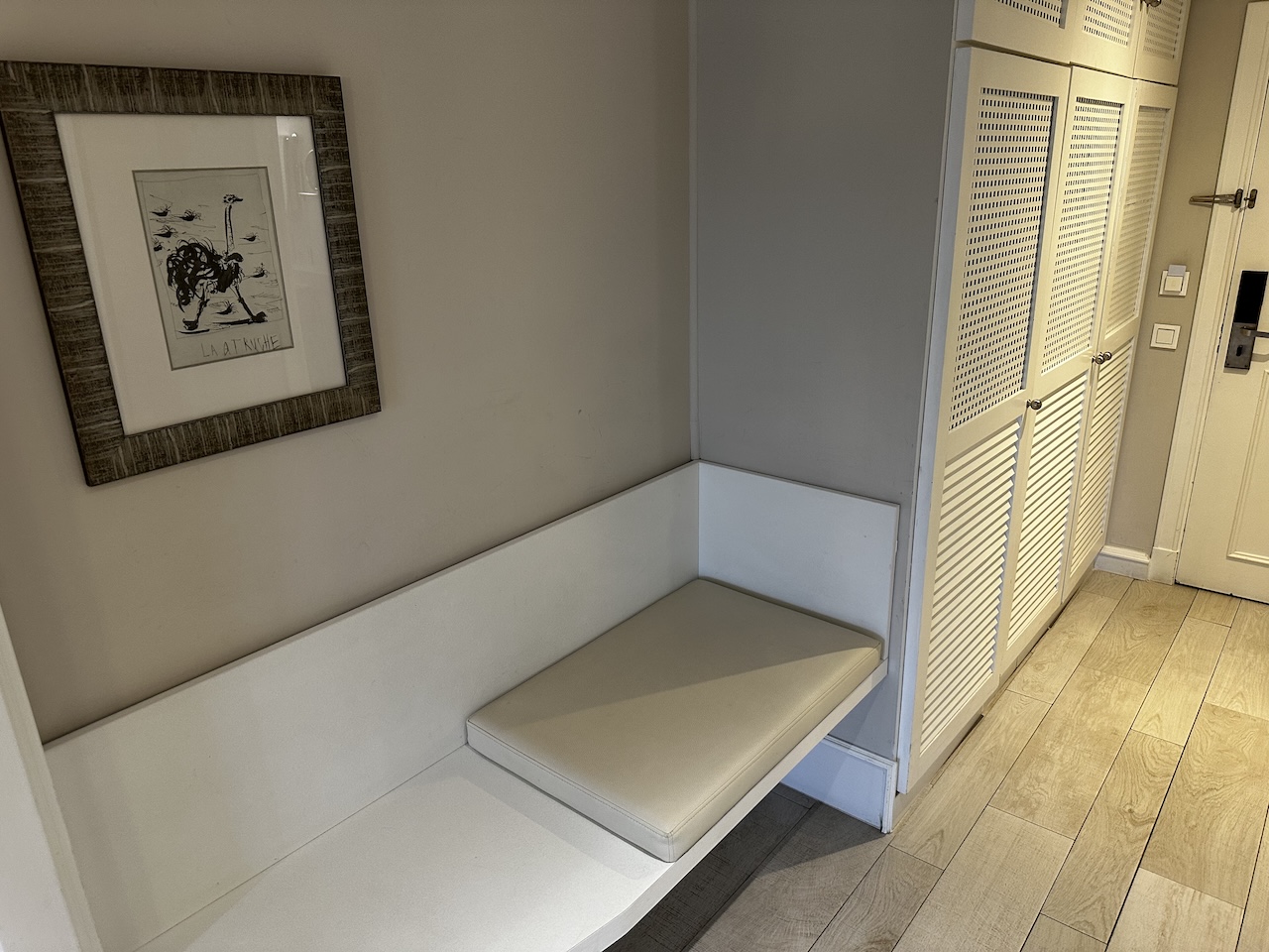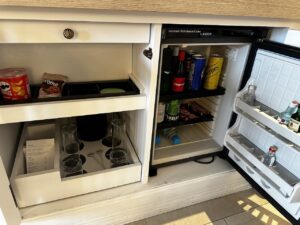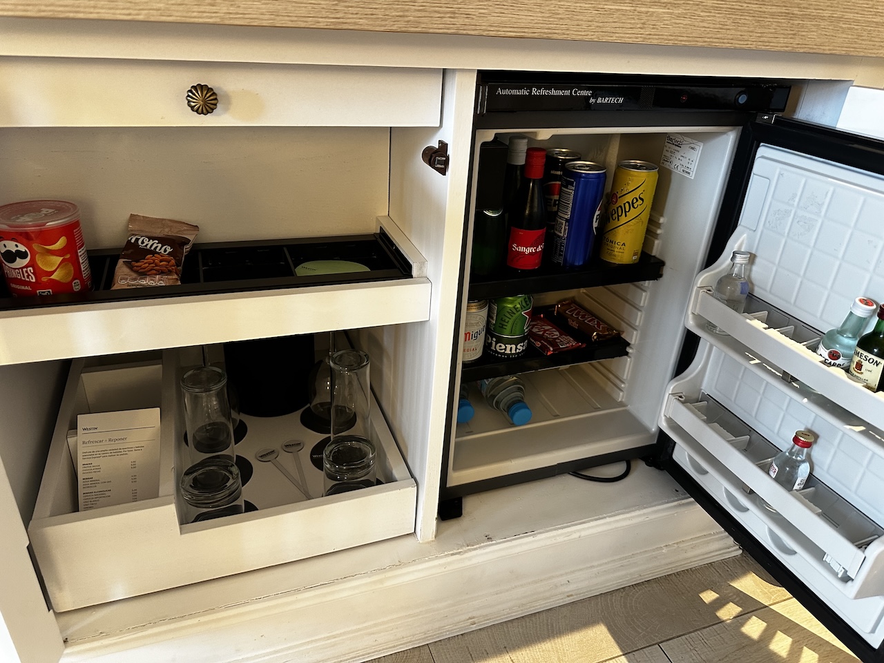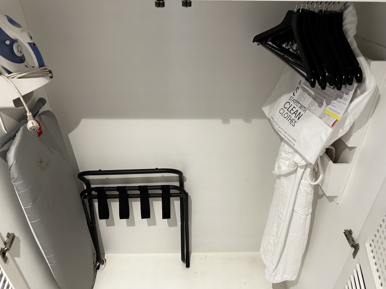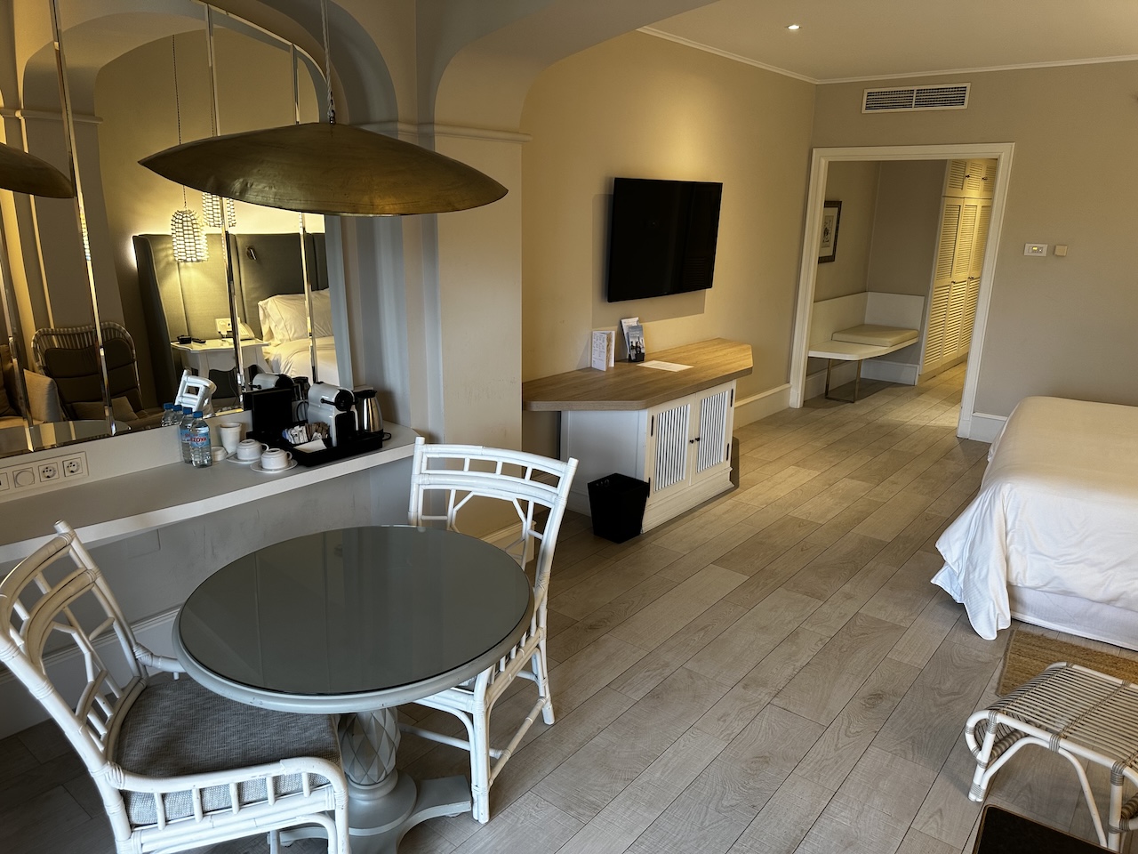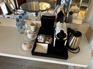 Zur Einrichtung gehörten auch Minibar, Espressomaschine, Wasserkocher, Safe, Bügeleisen usw.