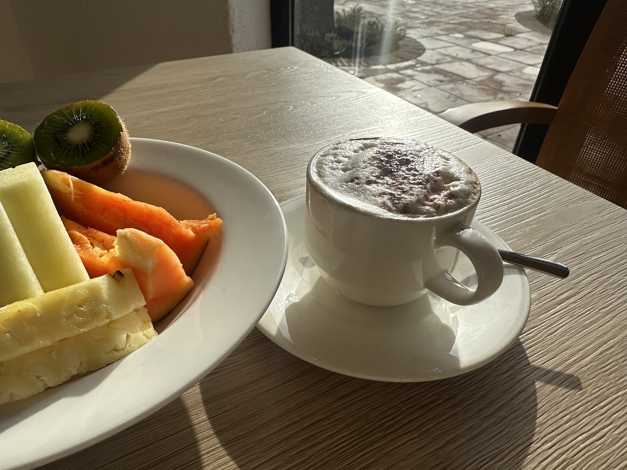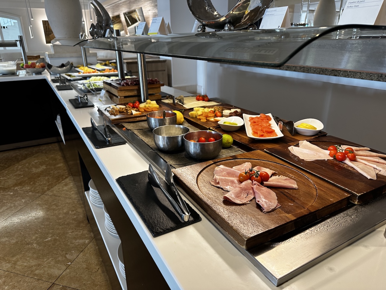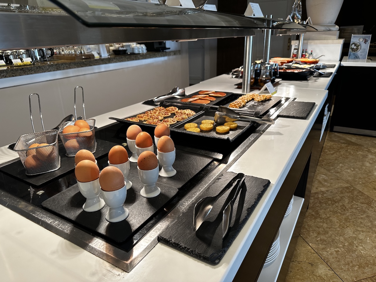 Das Frühstück wird als Buffet serviert und ist bis um 11 Uhr verfügbar. Die Auswahl ist riesig, das Sortiment war auch bei der niedrigen Auslastung zum Ende der Saison reichhaltig.