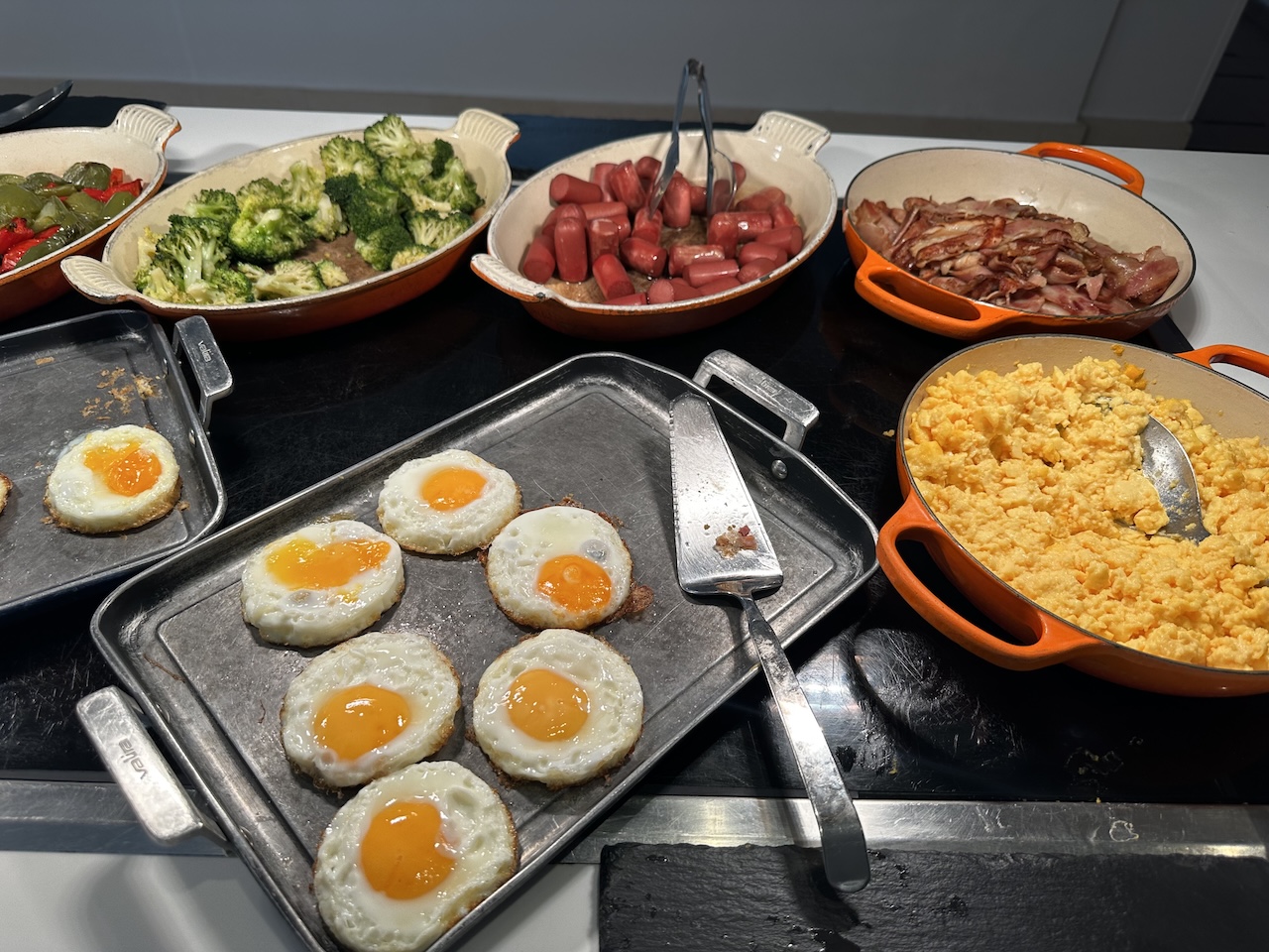 Zusätzlich dazu sind einige Speisen wie Omelette verfügbar, diese werden – so wie die Heißgetränke auch – bei den Kellnern bestellt und an den Platz gebracht.