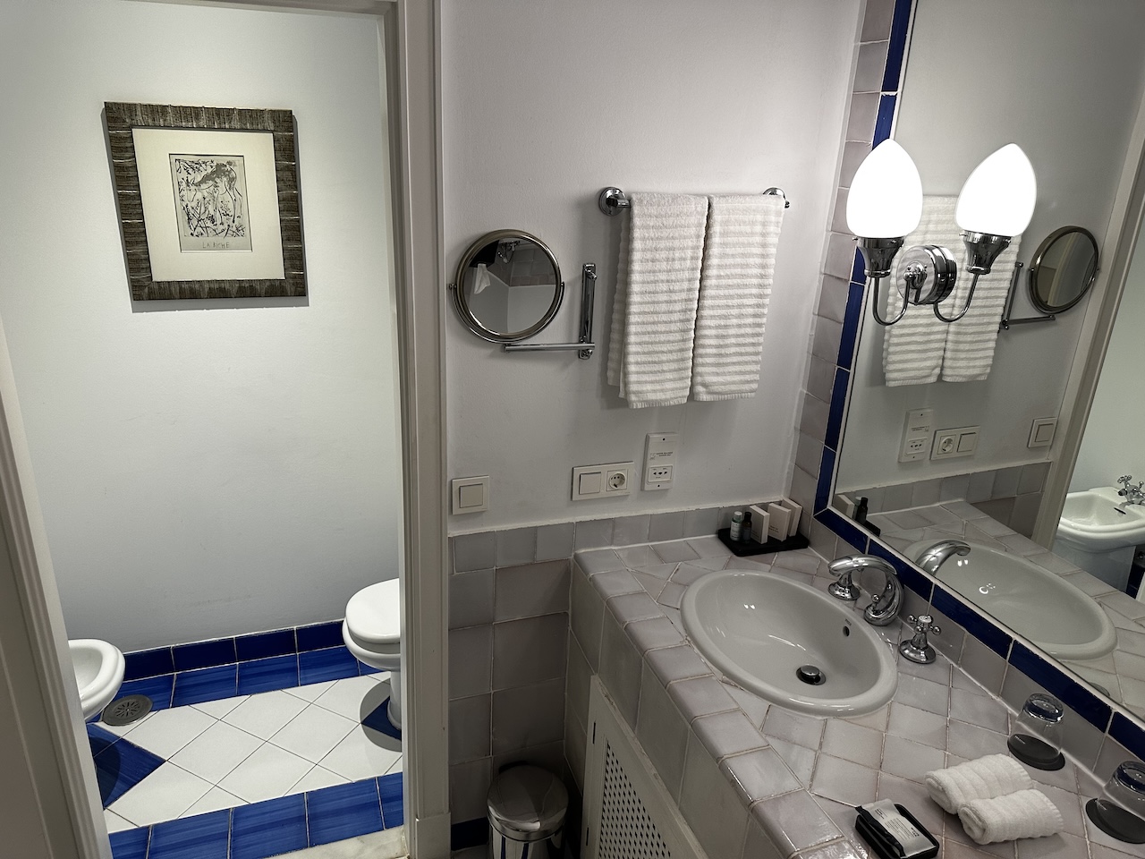 Das Bad war im Verhältnis zum Zimmer und relativ geräumig. Darin eine abgetrennte Dusche, Badewanne und separate Toilette im Nebenraum.