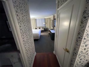 Kurz vor dem Check-In fuhr ich vor dem Hotel vor. Einer der „Valets“ fragte, ob ich für 49 USD den Valet Service nutzen oder für 25 USD selbst parken wolle. Das Parkdeck sei dasselbe, ca. 100m von der Hoteleinfahrt entfernt. Beim Self-Parking müsse ich halt selbst parken und das Parkticket selbst ziehen. Und ich dürfte das Parkhaus nicht verlassen, während ich beim Valet Service das Auto immer wieder bestellen und abgeben könnte. Ersteres klang einfach genug, zweites hatte ich nicht vor. Dennoch sollte sich dies als Fehlentscheidung entpuppen.