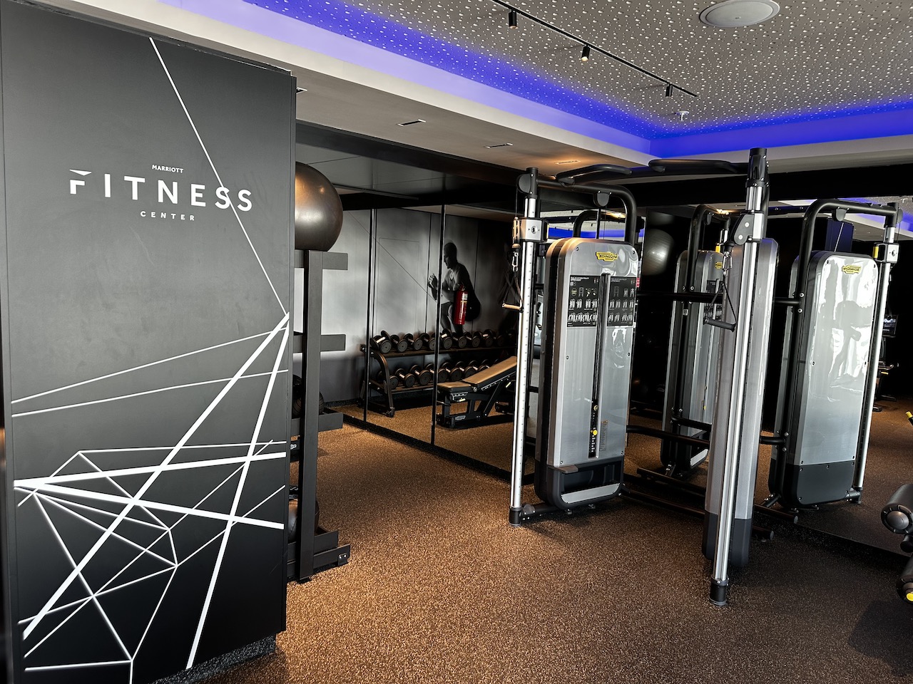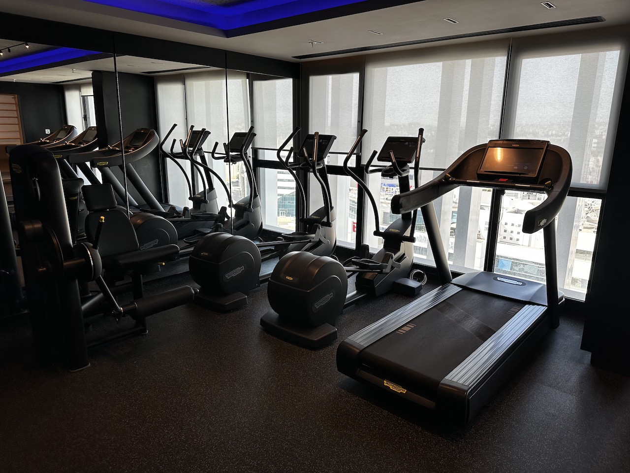 Das Fitnessstudio ist recht gut ausgestattet und rund um die Uhr geöffnet. Für Hotelgäste wurden dort Wasser und Obst bereitgestellt.