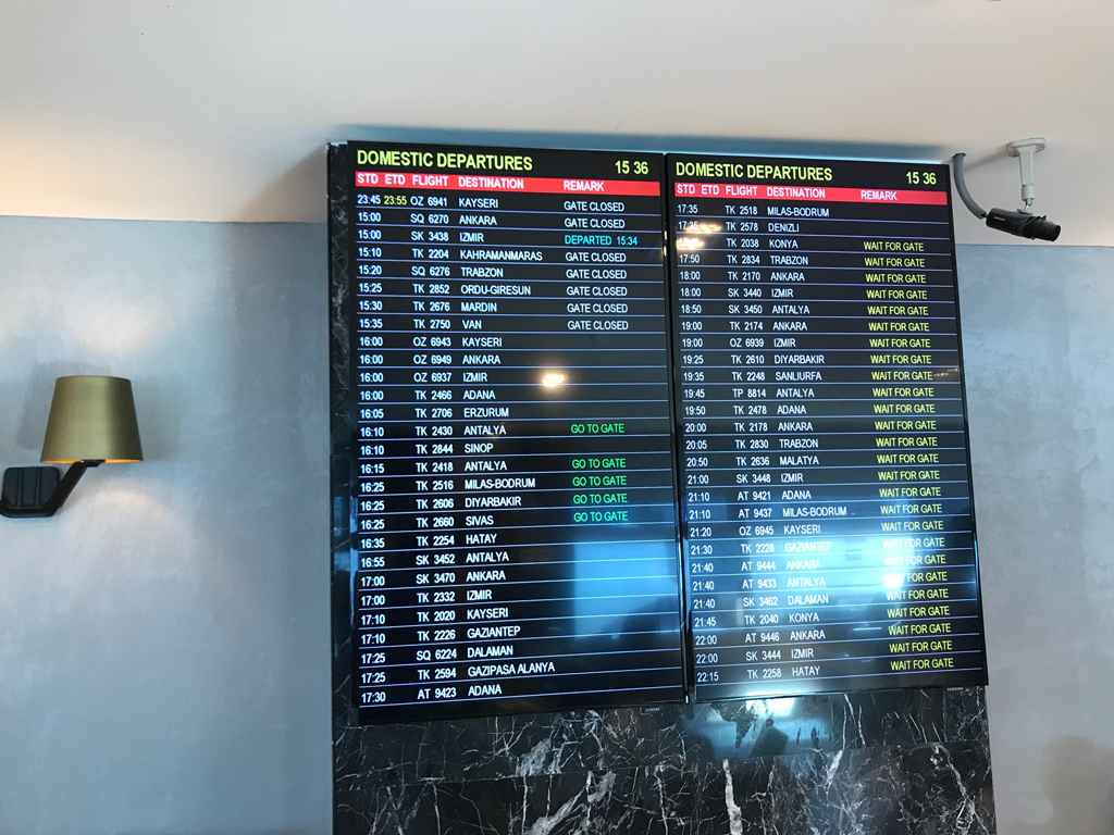 Jeder Flug wird in türkischer und englischer Sprache in der Lounge aufgerufen. An vier Busgates wird das Boarding durchgeführt und die Gäste werden mit einem eigenen kleinen Bus zu ihrer Maschine gebracht. Mit diesem Konzept werden lange Wartezeiten am Gate umgangen und die Gäste können länger in der Lounge arbeiten bzw. entspannen.