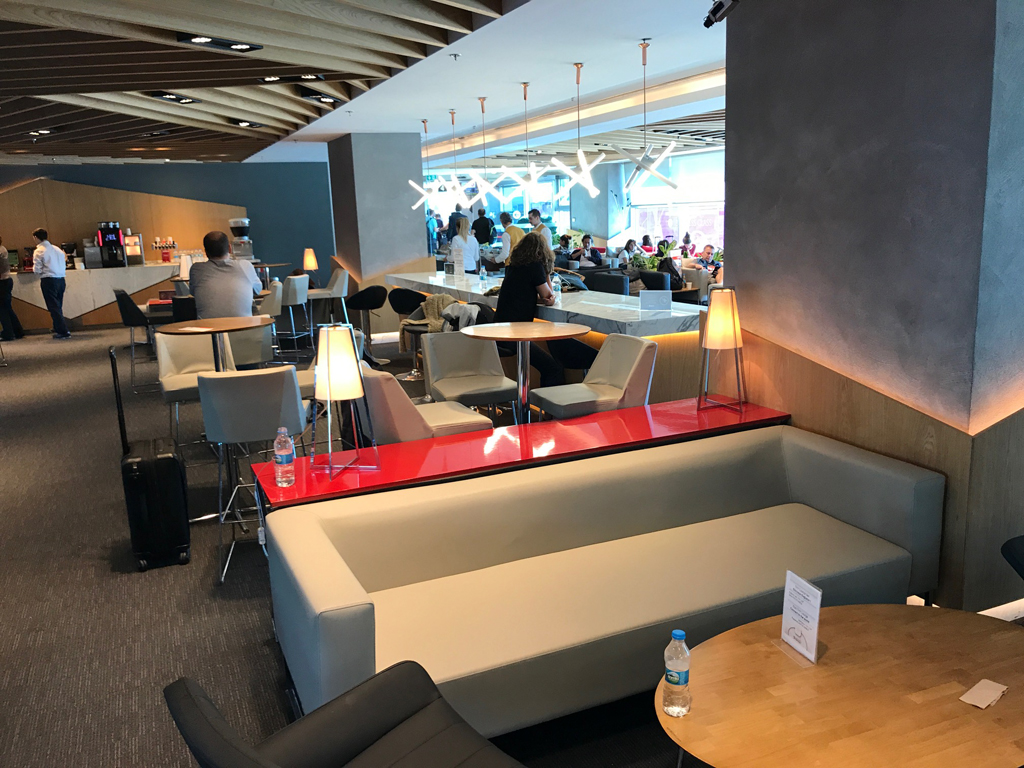 Vor dem Eingang der Lounge befindet sich ein kleiner Kontrollpunkt sowie ein Check In-Bereich und eine Sicherheitskontrolle, hinter der sich dann der eigentliche Loungebereich befindet.